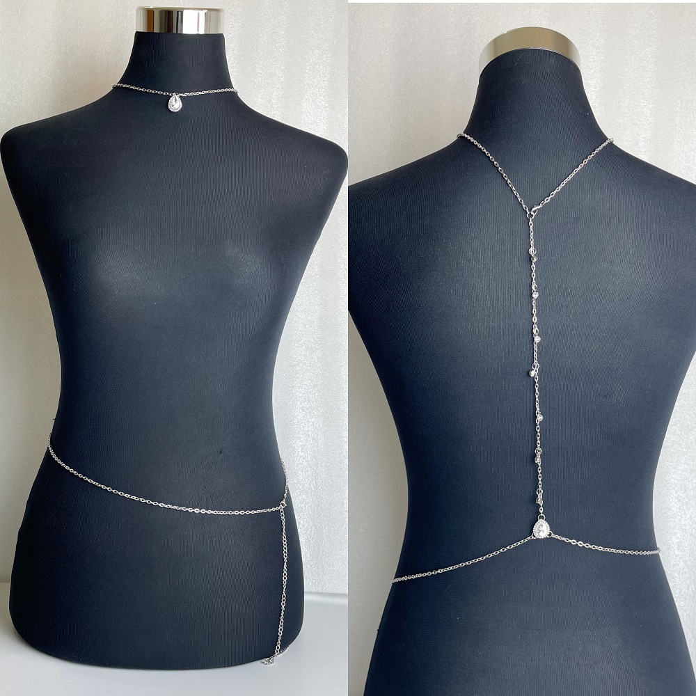 Популярный банкетный стиль Temu, великолепная доступная роскошная цепочка для тела с бриллиантами и каплями воды, сексуальное свадебное платье с кисточками, преувеличенные аксессуары