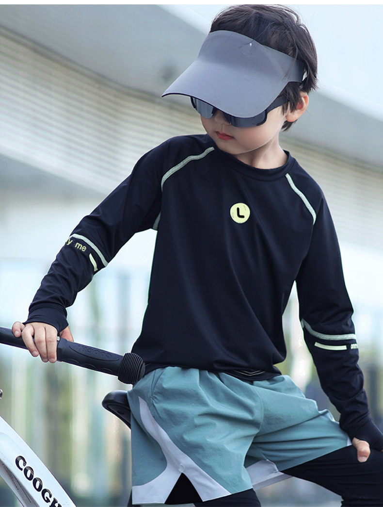 Топы для мальчиков 2025, весенне-летние детские быстросохнущие спортивные футболки с длинными рукавами, солнцезащитная одежда из ледяного шелка для мальчиков, тренировочная одежда