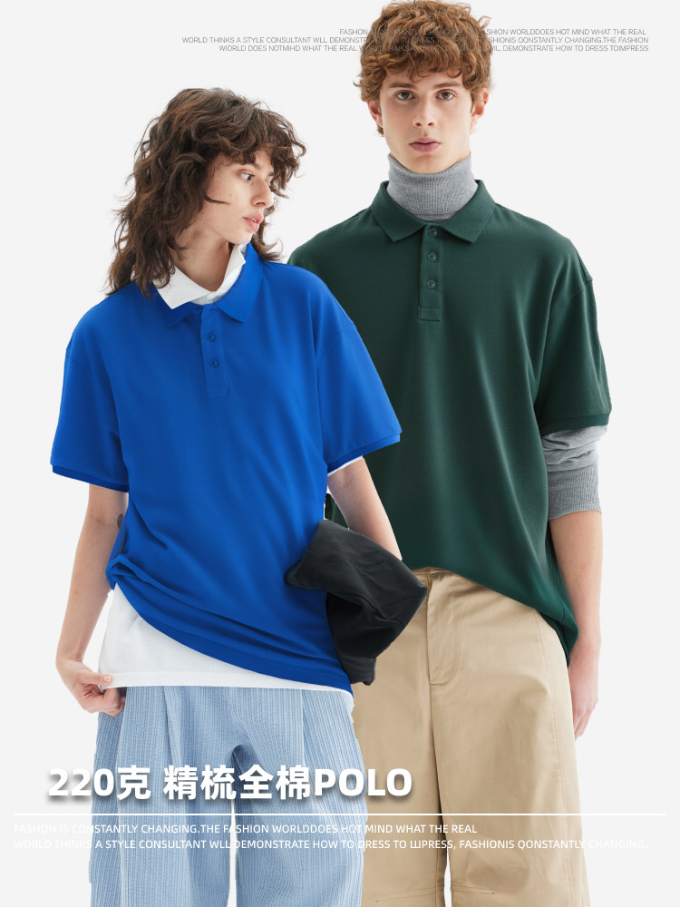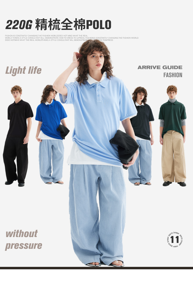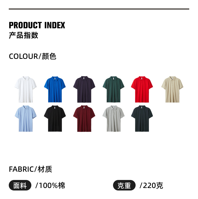Мужская летняя повседневная футболка-поло из чесаного хлопка AG220g, однотонная, с коротким рукавом и отложным воротником, модная, рекламная, фабричное производство.