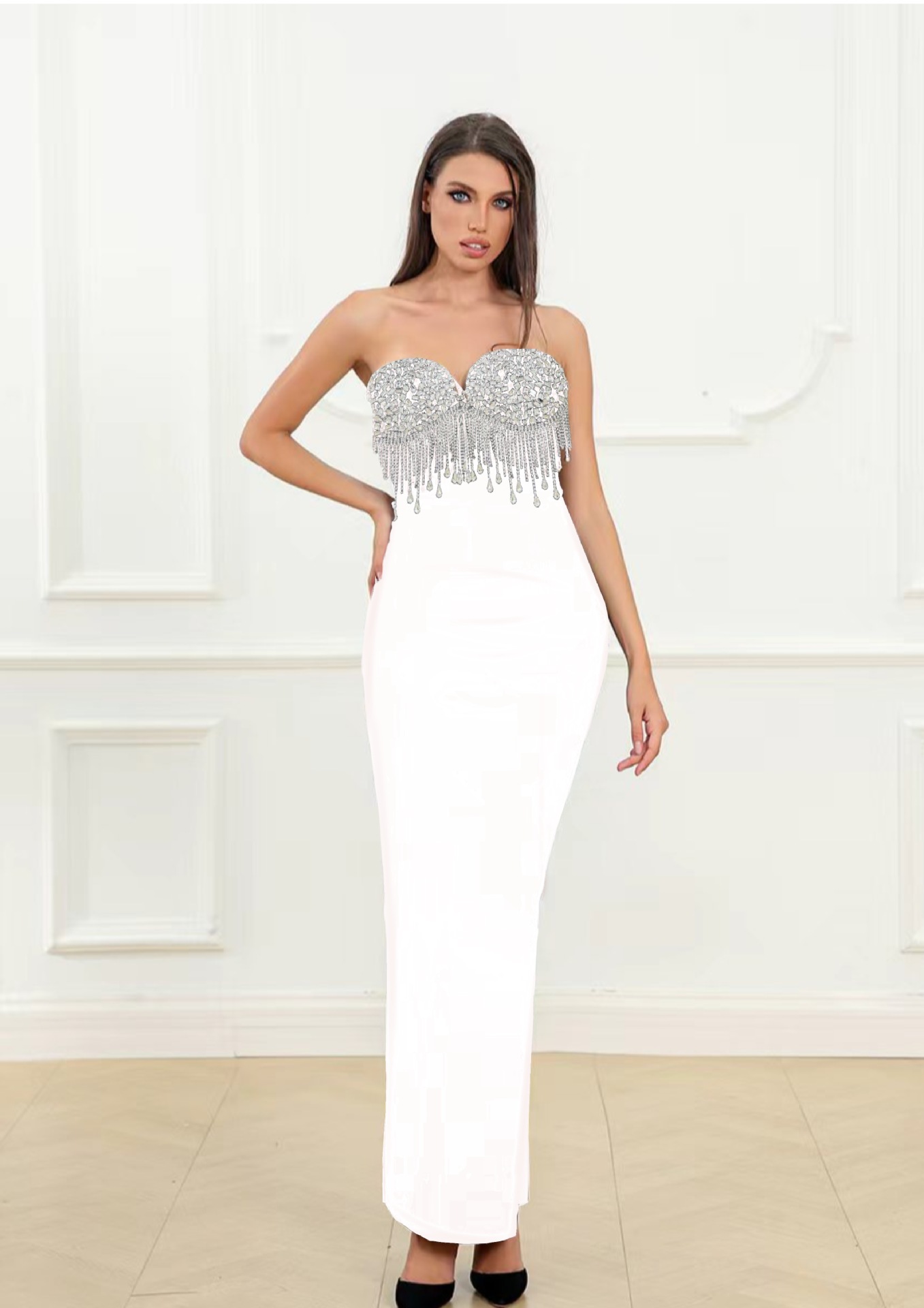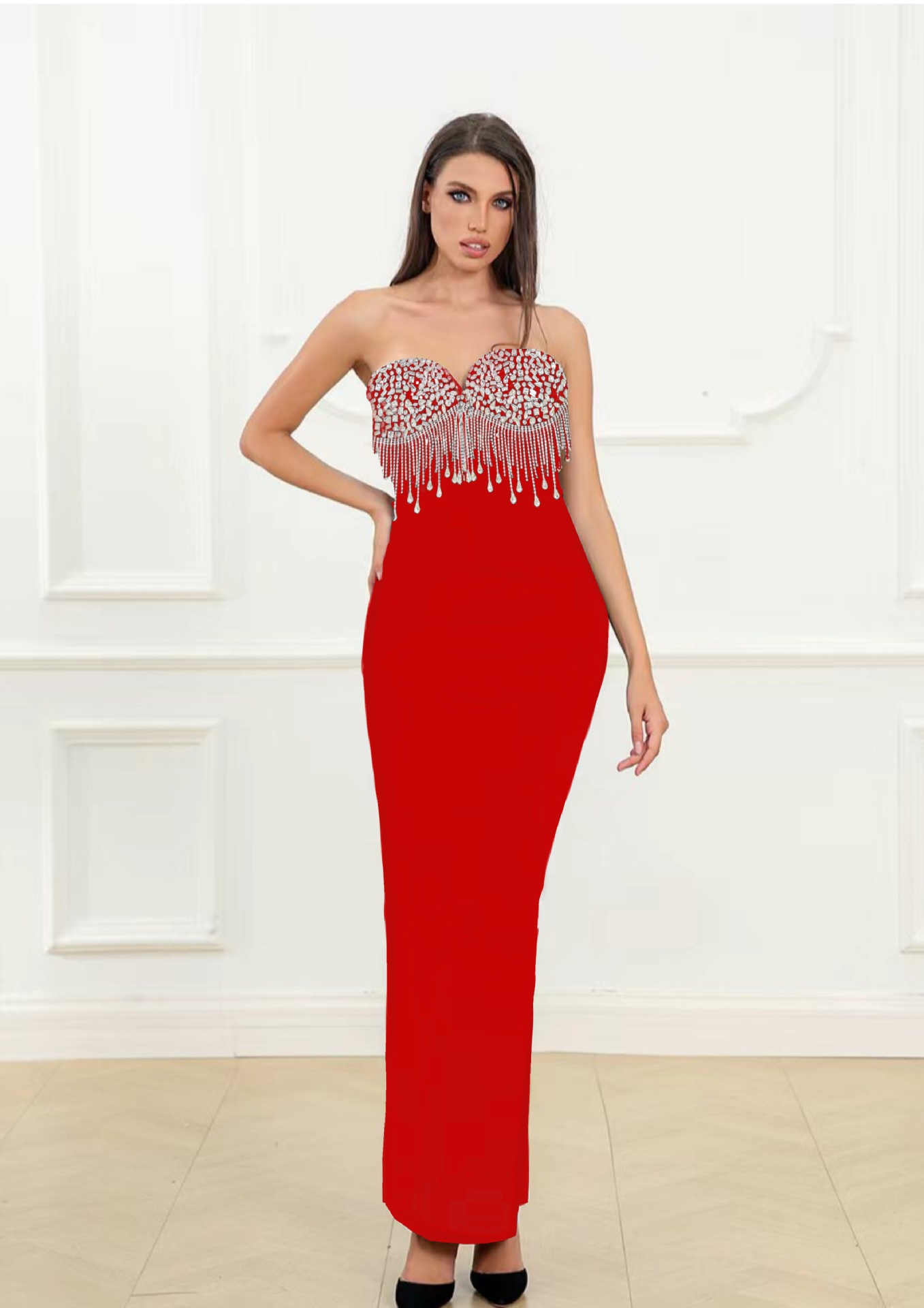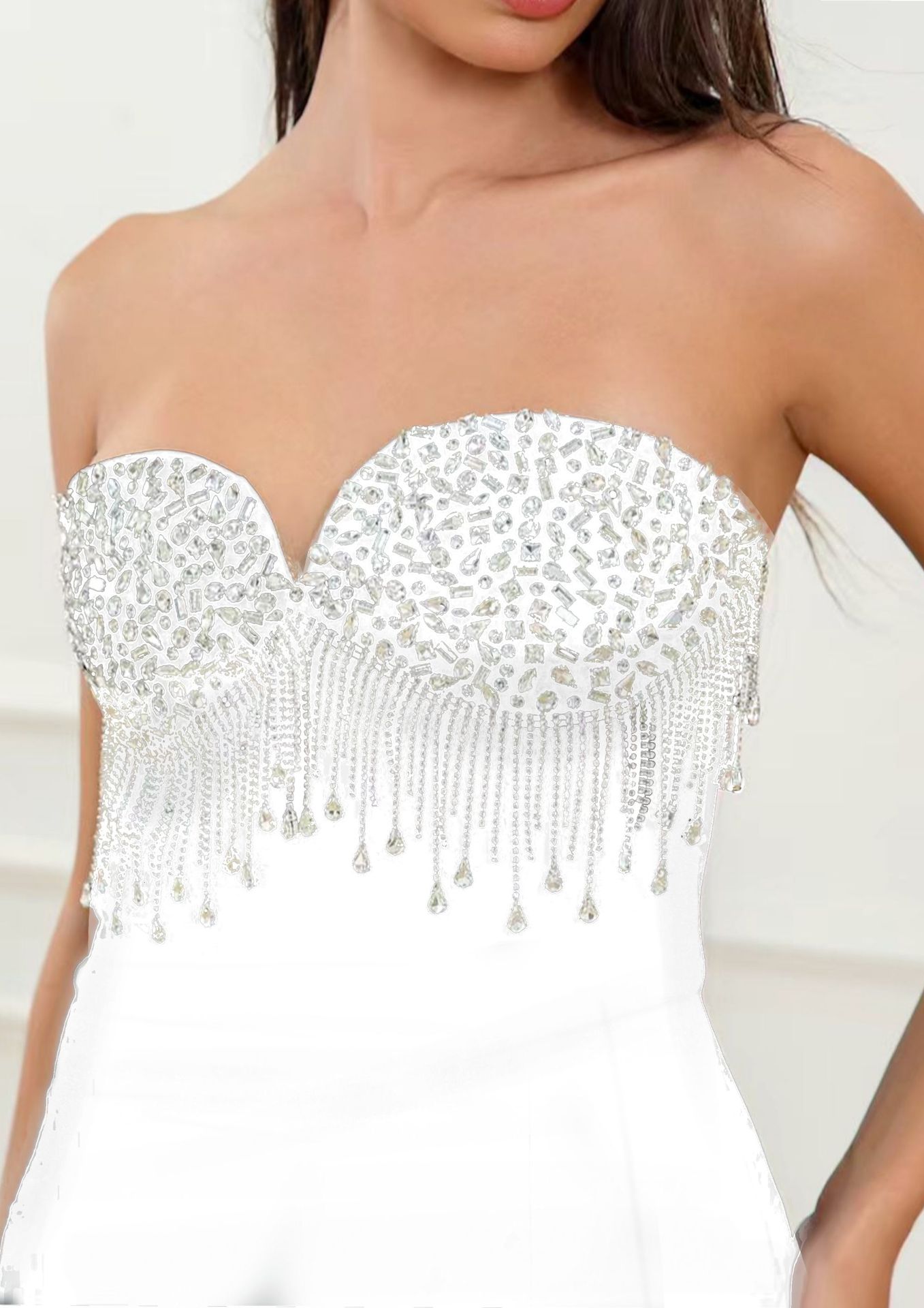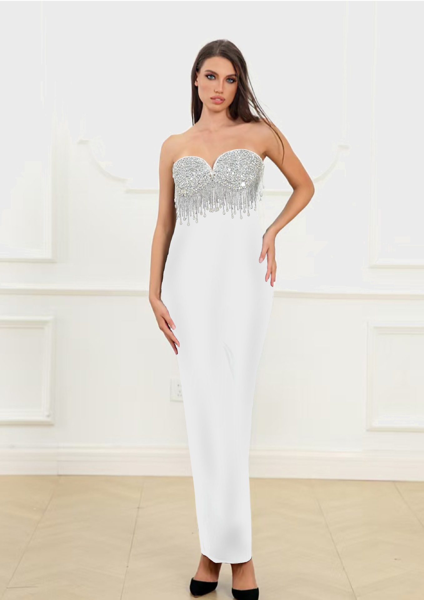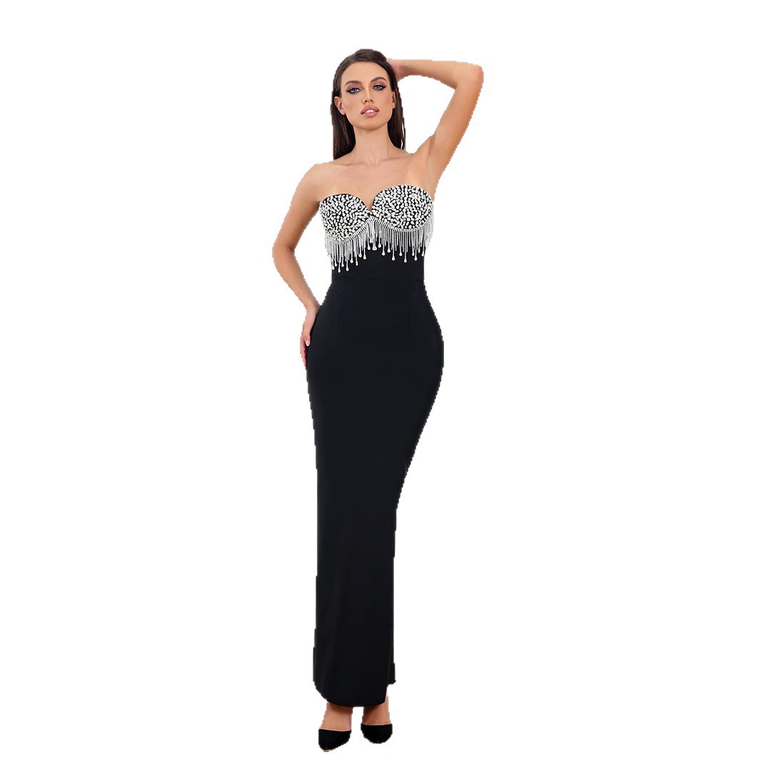 Изысканное вечернее платье с бриллиантами, облегающее платье на тонких бретельках, идеально подходит для банкетов и свадеб.