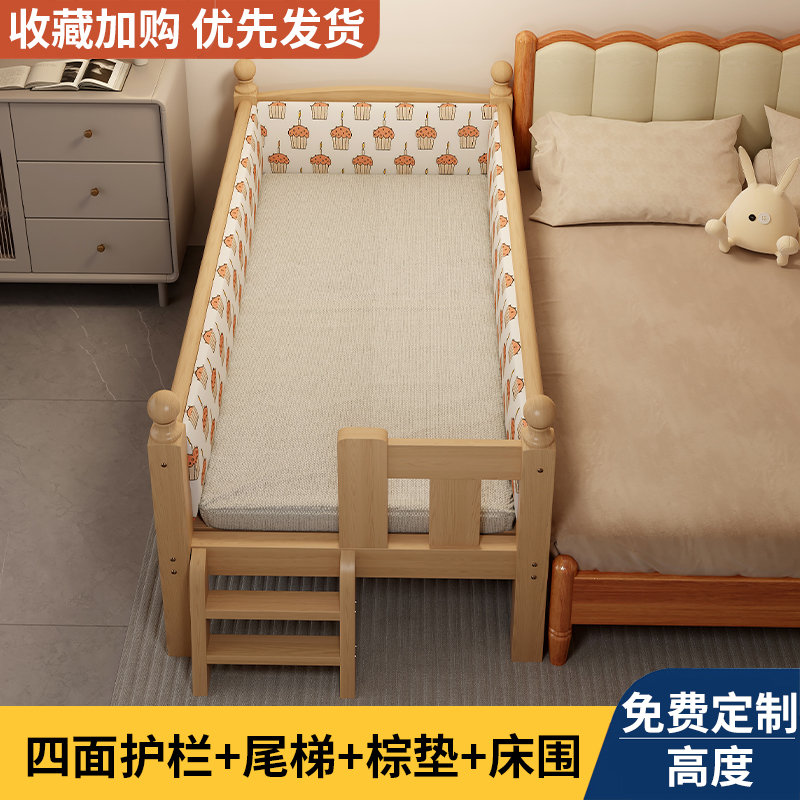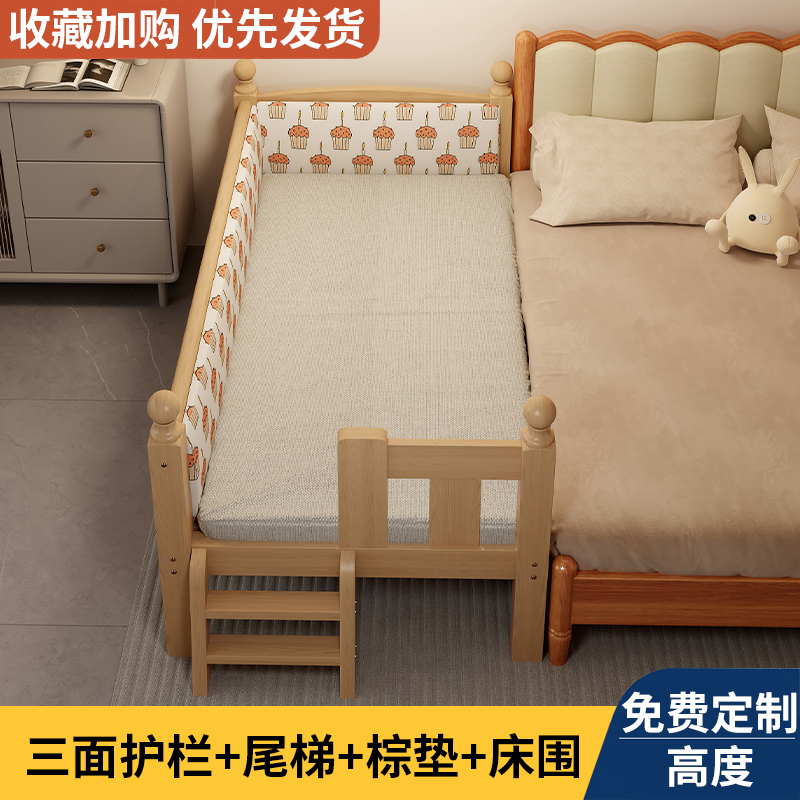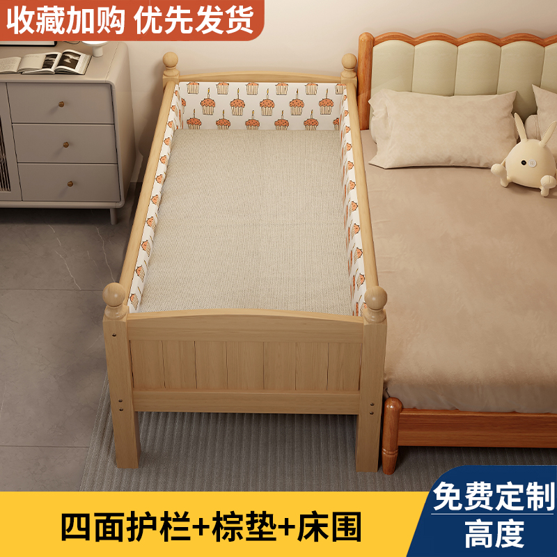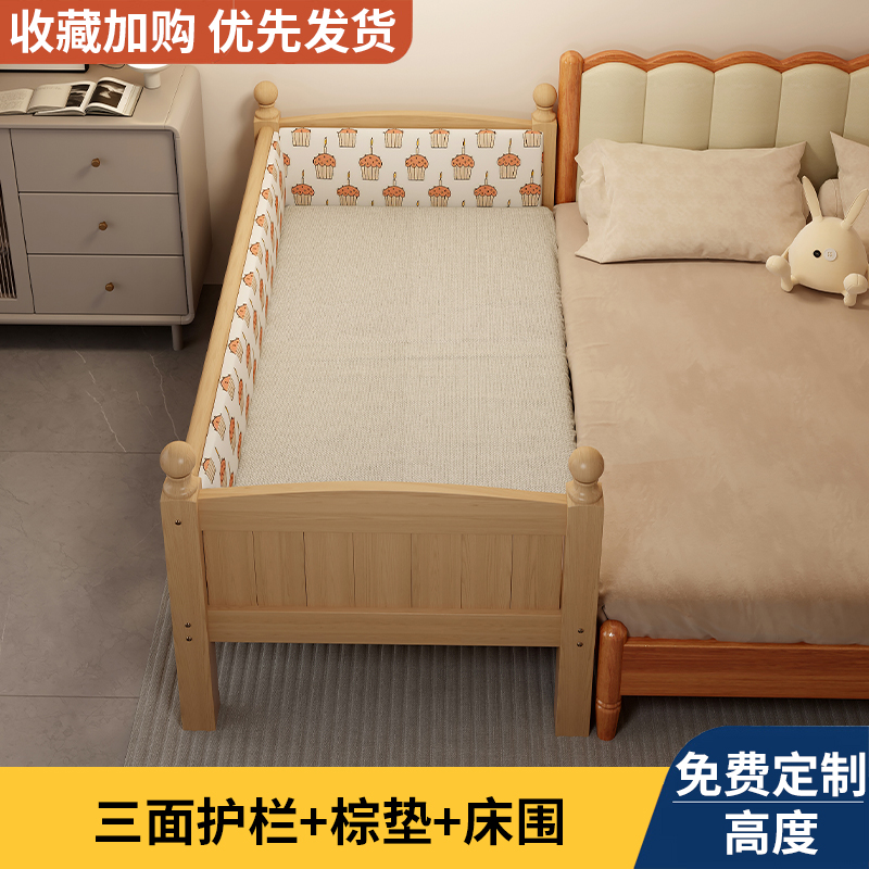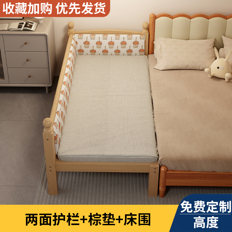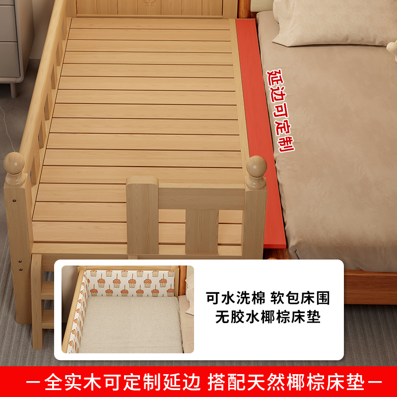 Детская кровать из массива дерева с бортиками, приставная кроватка, кровать для малышей, большая кровать, раскладная кровать, отдельная кровать, защита для безопасности
