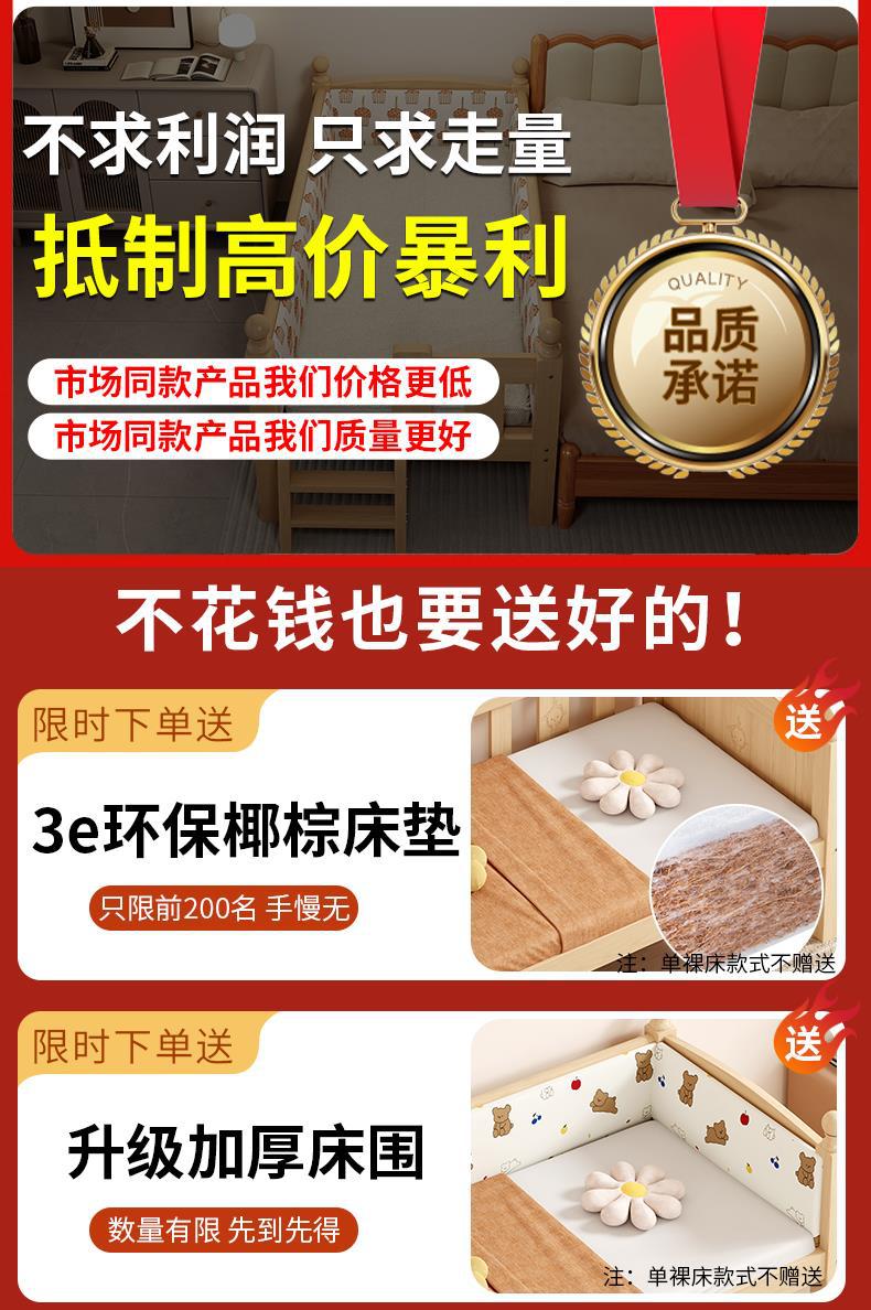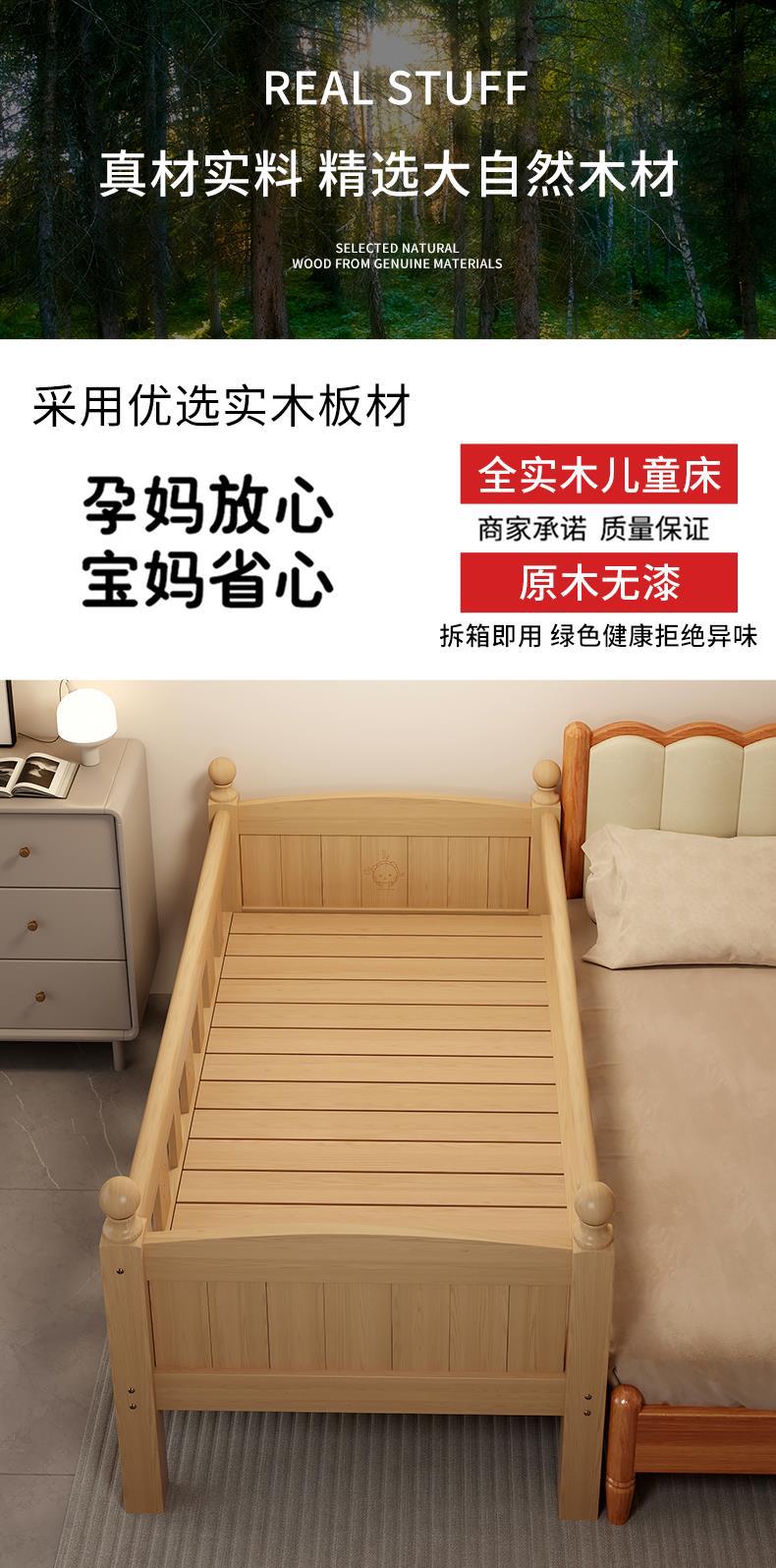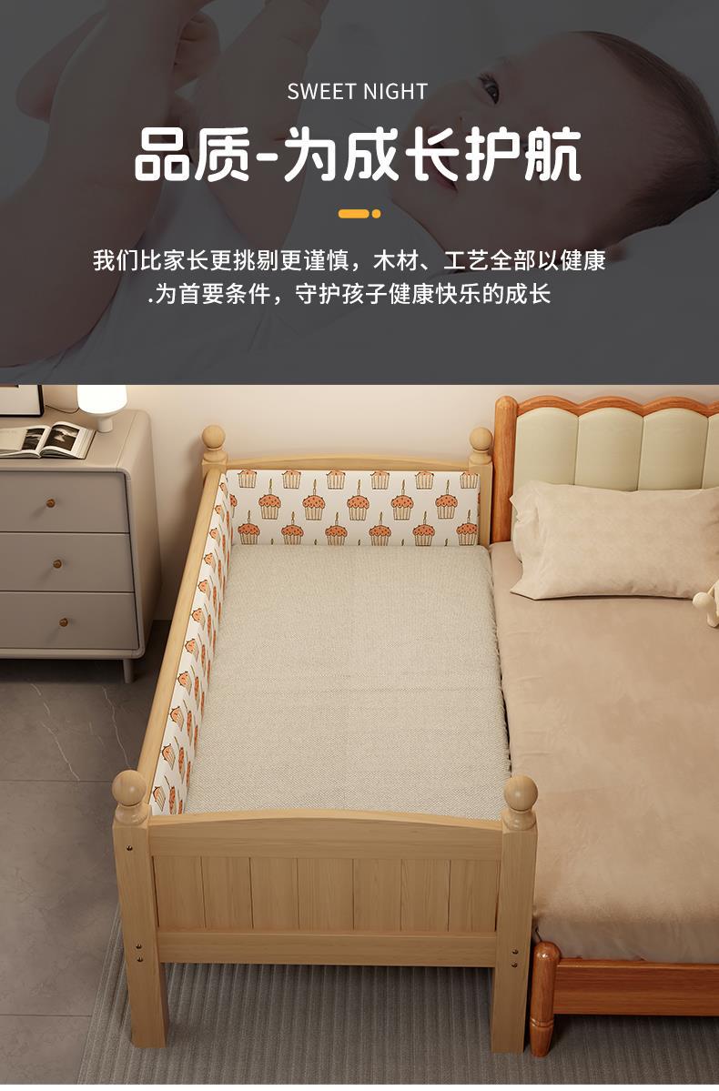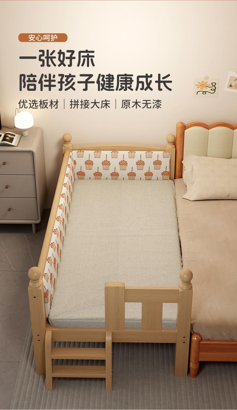 Детская кровать из массива дерева с бортиками, приставная кроватка, кровать для малышей, большая кровать, раскладная кровать, отдельная кровать, защита для безопасности