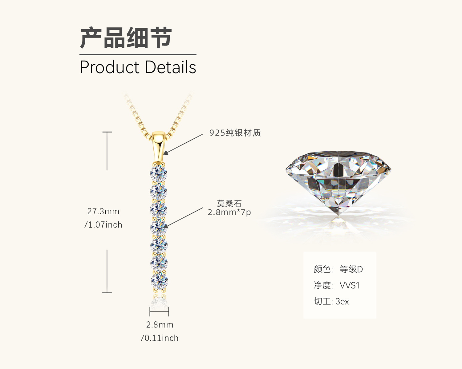 | 本厂莫桑钻饰品 均可通过测钻笔 配送GRA证书黑卡 支持复检 国标S925银电镀厚金 |