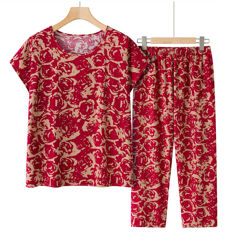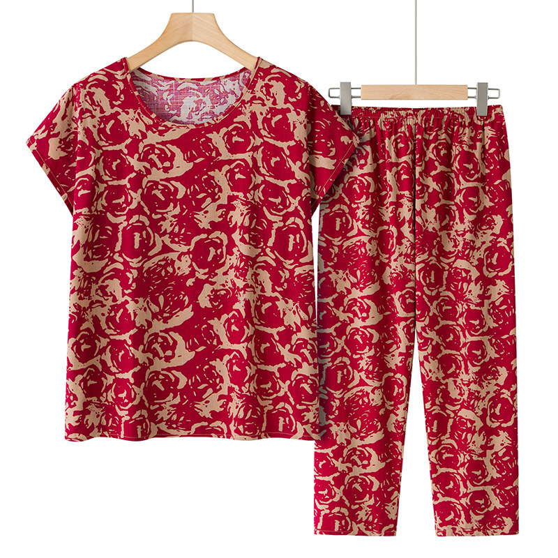 Летний костюм бабушки, женский костюм-двойка из хлопкового шелка с короткими рукавами для женщин среднего и пожилого возраста, топ-пуловер для мамы, топ для пожилых людей