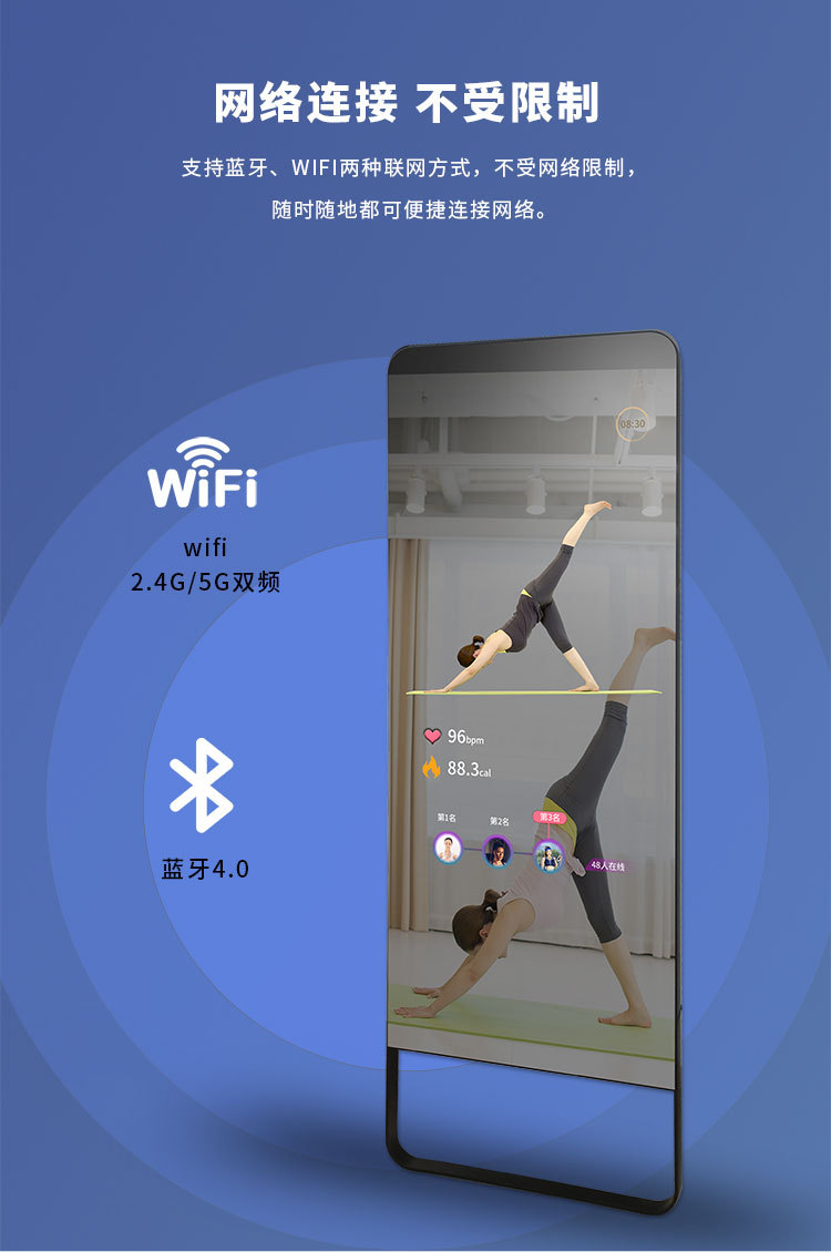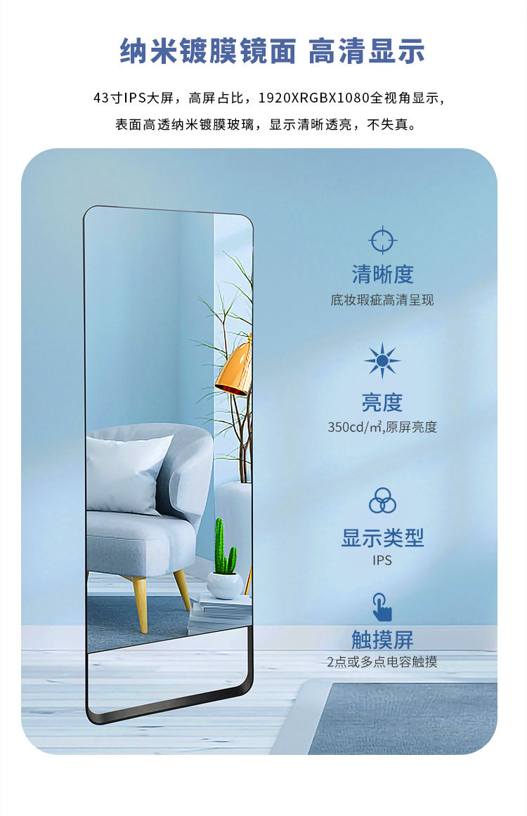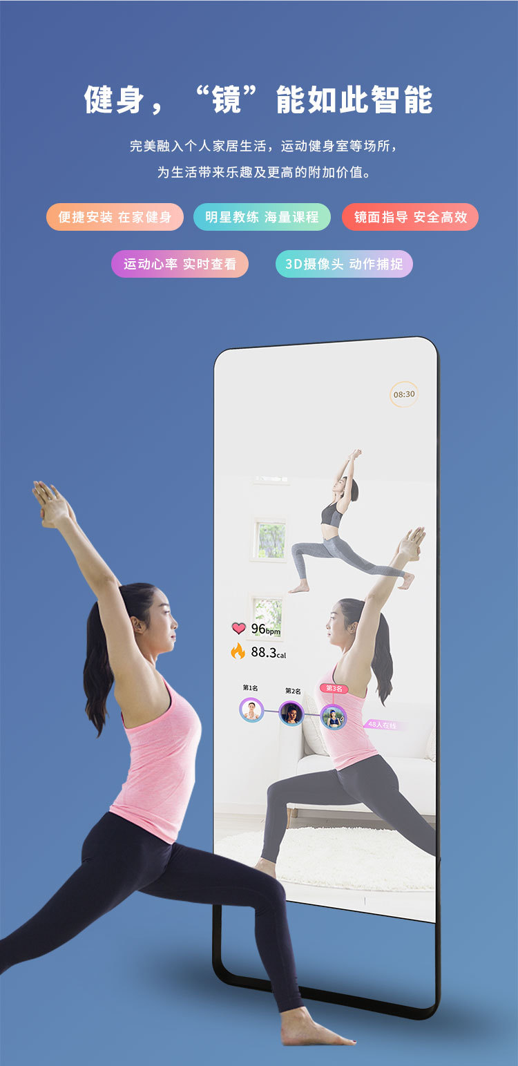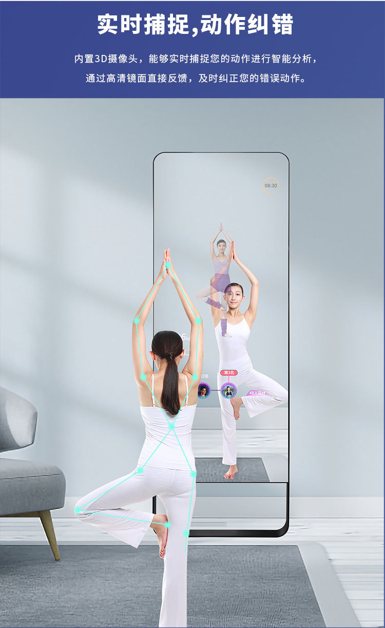 AI Smart Fitness Magic Mirror Fitting Mirror 43inch Спортивное зеркало для йоги Вертикальное сенсорное управление Универсальный экран для караоке Проекционное танцевальное зеркало