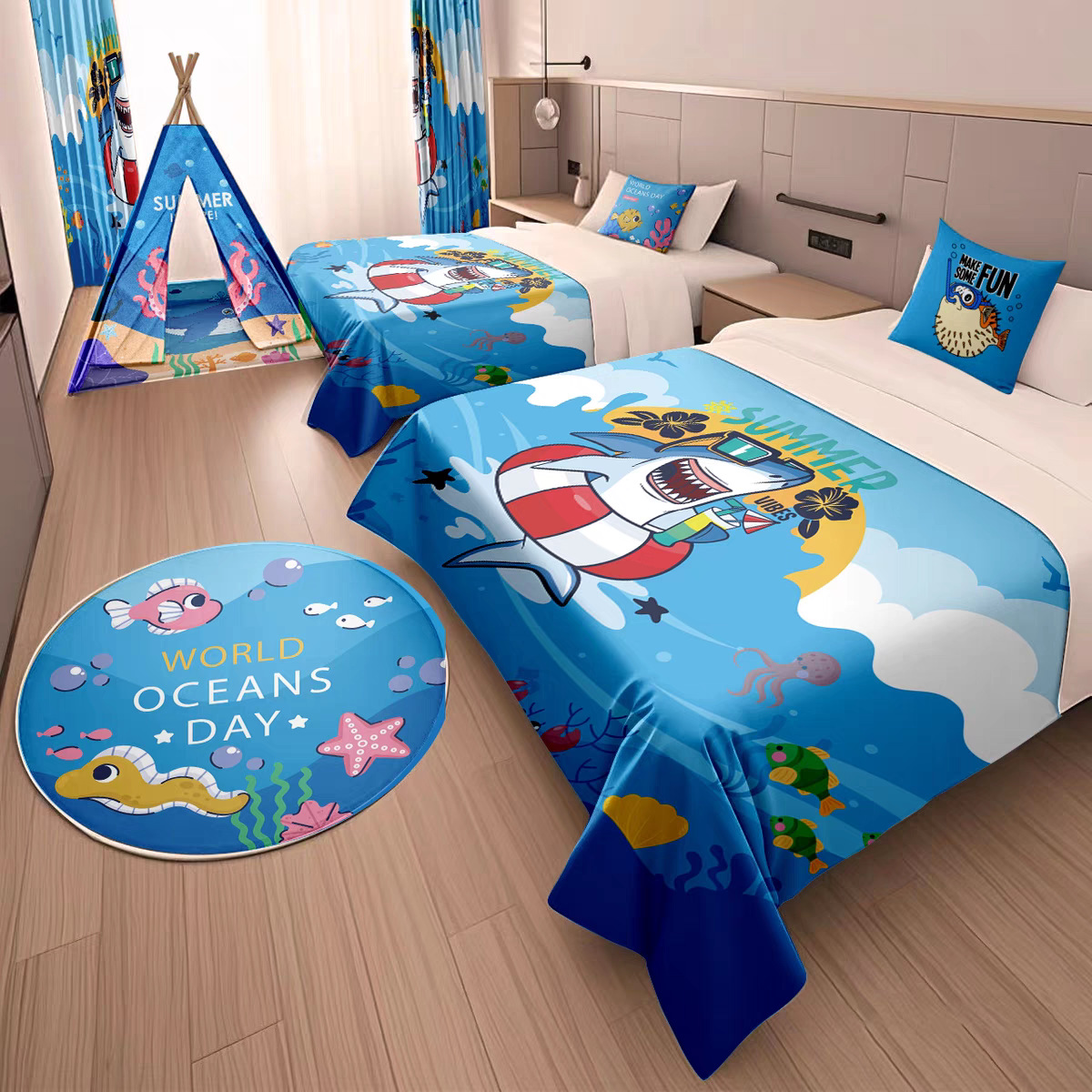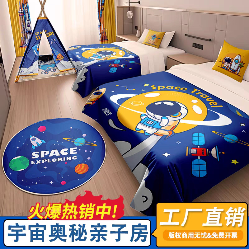 Двухслойная печать на большом покрывале [применимо к кроватям 1,8/2,0]; Двухслойная печать небольшого покрывала [применимо к кроватям 1,2/1,35]; Подушка + наполнитель подушки [одинарный 45*75см]; Палатка [расширение 120*120*160см]; Коврик для палатки [120*120см]; Коврик круглый [диаметр 1м]; Детский туалетный набор [1 комплект]; Табличка на дверь тематической комнаты [с клейкой основой]; детская лошадка-качалка; Проекционный атмосферный свет; мягкая кукла; Детский стол из строительных блоков [1 стол, 1 стул, 1 набор строительных блоков]; Набор кружек [3 шт.]; Полотенце детское [35*75см 150г]; Детское банное полотенце [70*140см 600г]; Детский халат [один размер подходит всем]; Детские одноразовые тапочки [10 пар]; Подвесная картина из трех частей [набор из 3 шт.]; Держатель для дверных карточек тематической комнаты [30 шт.]; Теплый напоминание о тематической комнате; Длинная прикроватная подушка [80*200см]