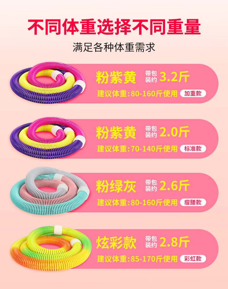 [Розовый, зеленый, серый — около 1.3kg ] Пружинный обруч для хула для похудения, похудения и коррекции фигуры (рекомендуемый вес 40-80kg ); [Розовый, зеленый, серый — около 1.6kg ] Пружинный обруч для хула для похудения, похудения и коррекции фигуры (рекомендуемый вес 40-80kg ); Бесшумный хулахуп [Розовый]; Бесшумный хулахуп [Фиолетовый]; Бесшумный хулахуп [Черный]; Бесшумный хулахуп [Желтый]; Бесшумный хулахуп [Синий]