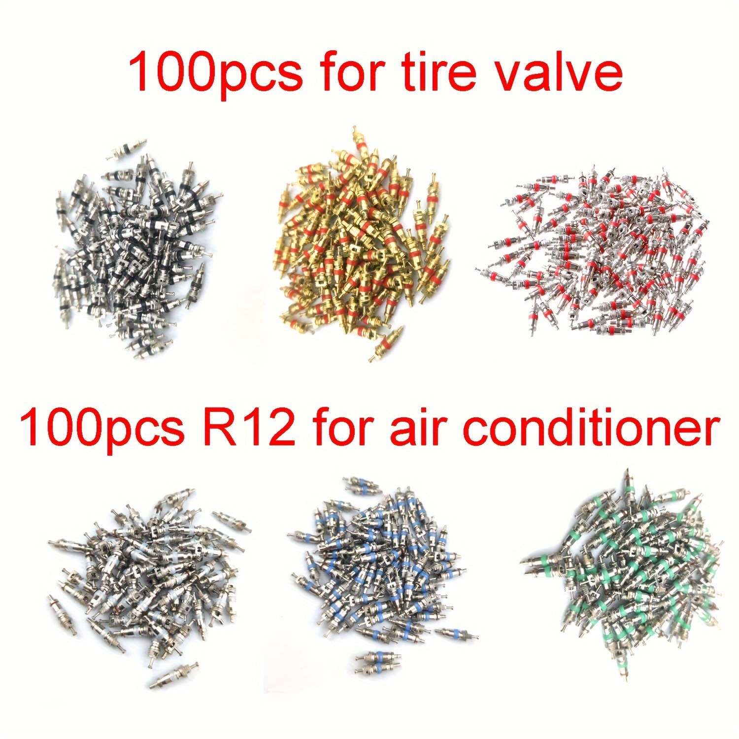 Американский сердечник клапана серебристый; Американский сердечник клапана золото; Кольцо из черной кожи с американским клапаном; Американский сердечник клапана серебро (цена 100 штук на версию); Американский сердечник клапана золото (цена 100 штук на версию); Сердечник клапана кондиционера зеленый; Сердечник клапана кондиционера белый; Сердечник клапана кондиционера синий