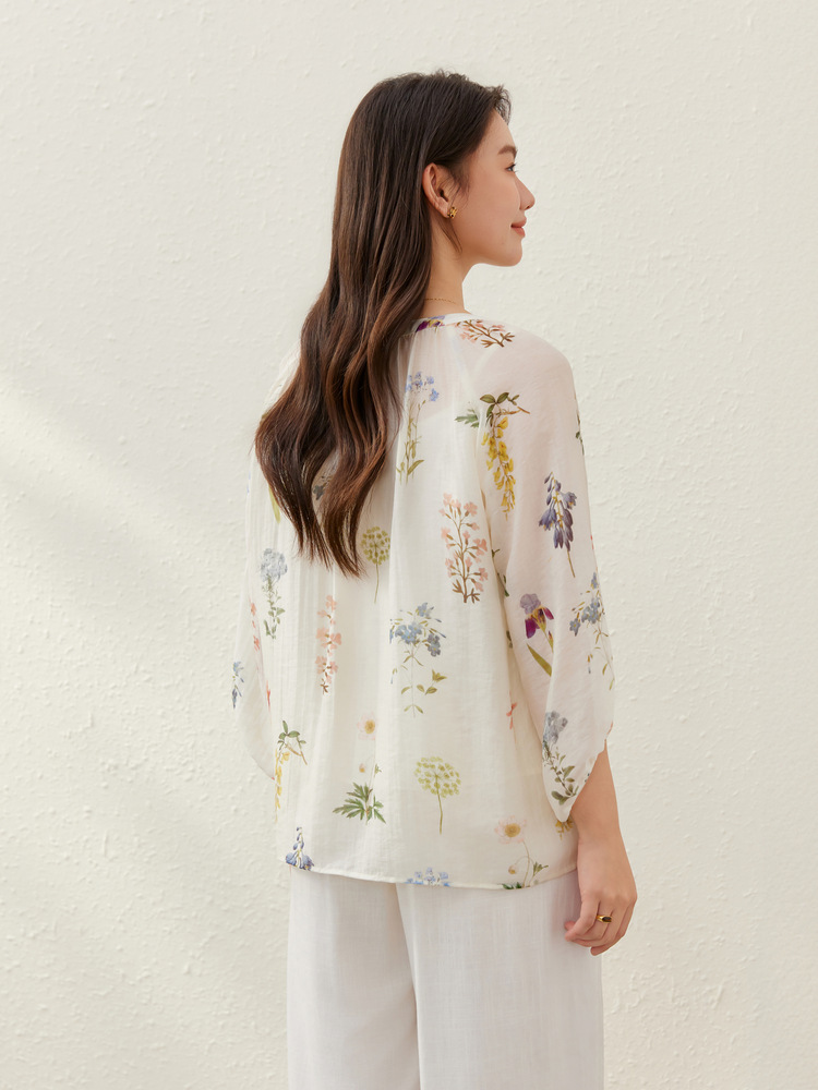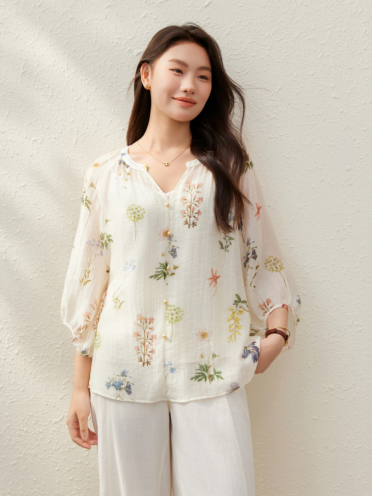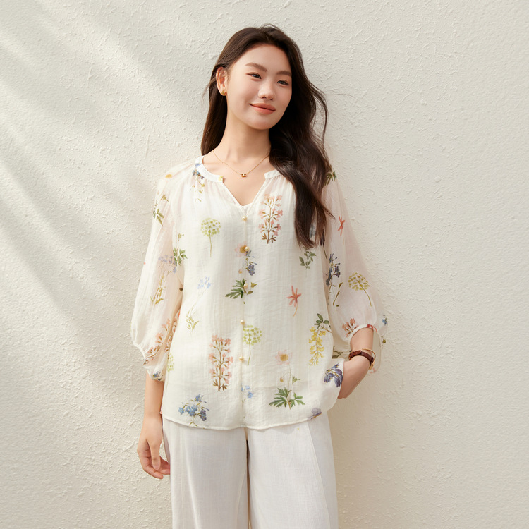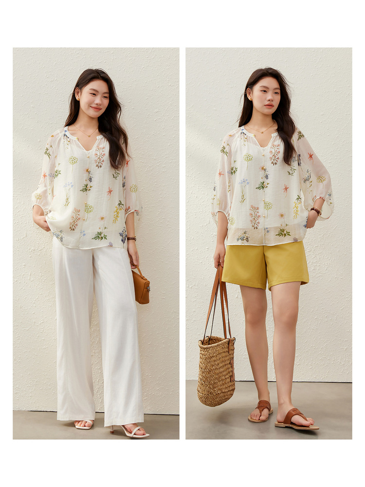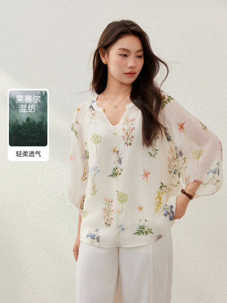 【Hua Ying Ban Xia】Легкая дышащая рубашка с французским v-образным вырезом и цветочным принтом, облегающая женская одежда больших размеров для женщин больших размеров, новый летний стиль.