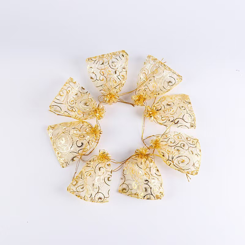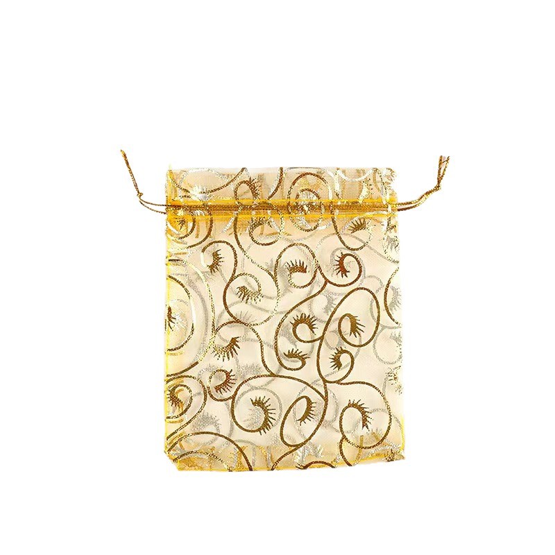 Сетчатая сумка с цветком из золотой фольги, сумка с цветком для бровей, сумка для завивки ресниц на шнурке, сумка из органзы для подарков ювелирных изделий.