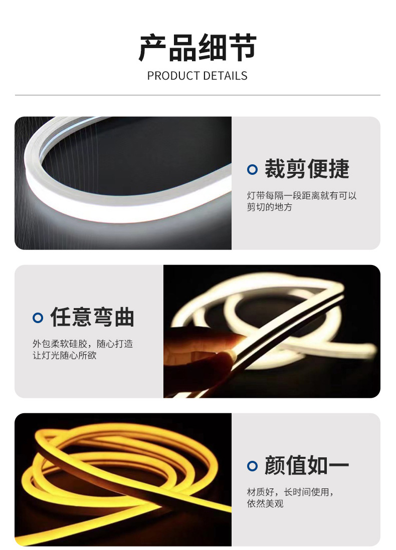 Гибкая светодиодная лента LED 12В, силиконовая, неоновая, 5*11/6*12, для улицы, низковольтная, водонепроницаемая, 2835, атмосферная, мягкая подсветка