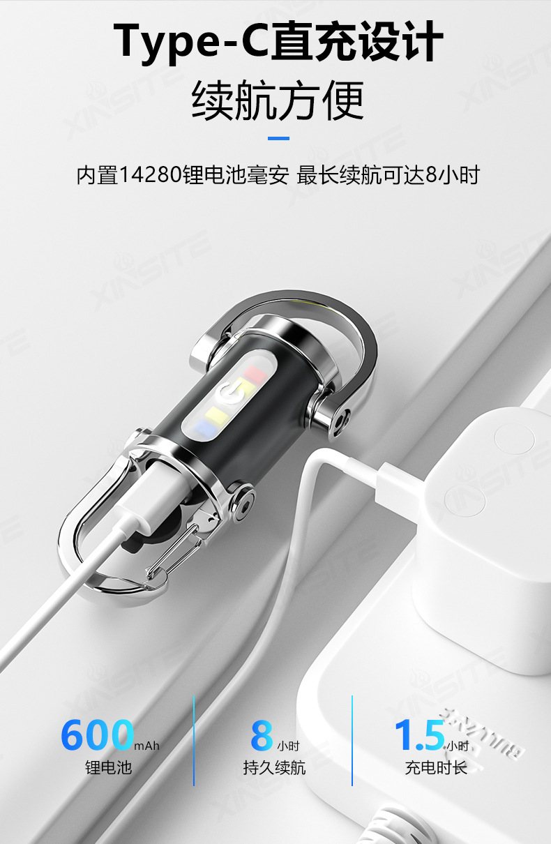 Многофункциональный рабочий свет светодиодный портативный брелок свет супер яркий мини-фонарик водонепроницаемый заряд cob сильный свет дальнего света