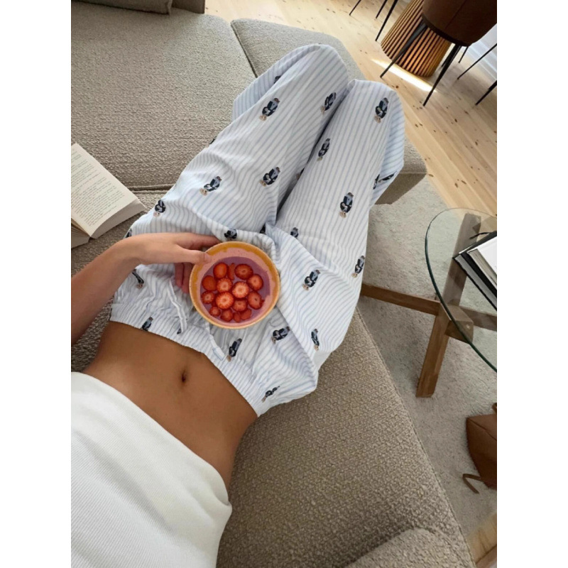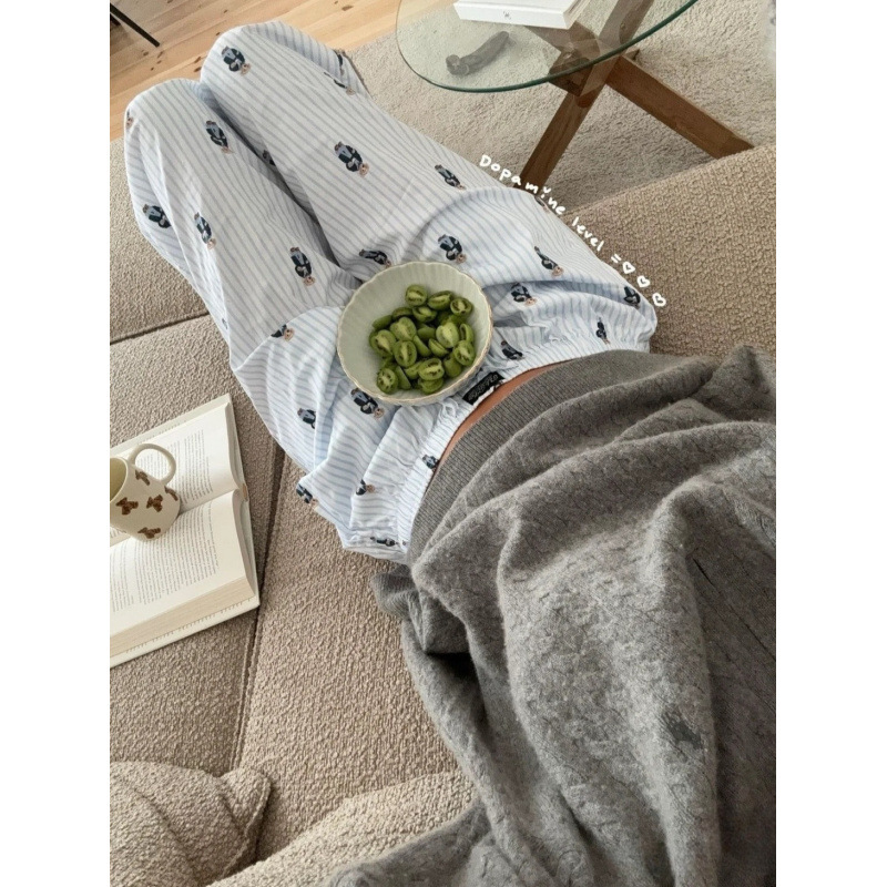 Полосатые пижамные штаны с медведем для женщин, летние повседневные длинные брюки, весенне-осенние свободные прямые широкие домашние брюки больших размеров на шнурке, подходящие для уличной одежды.