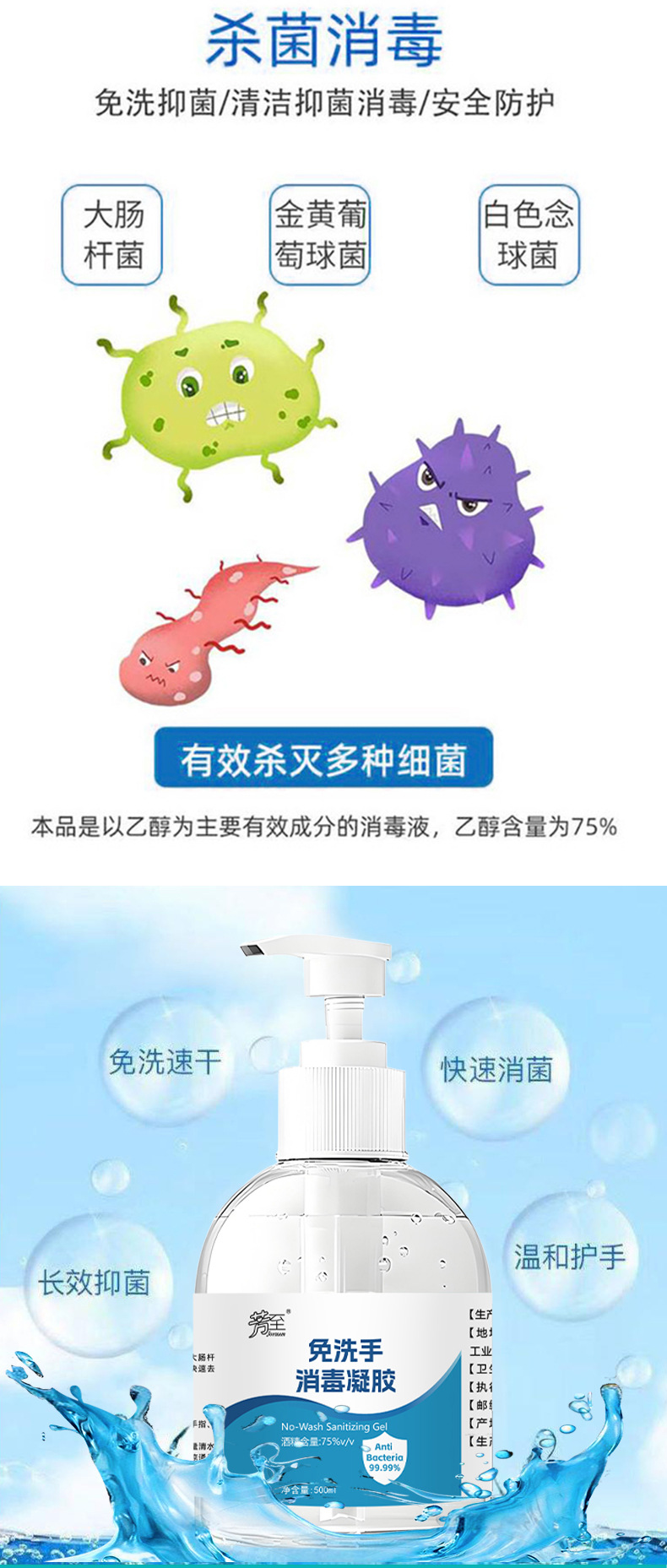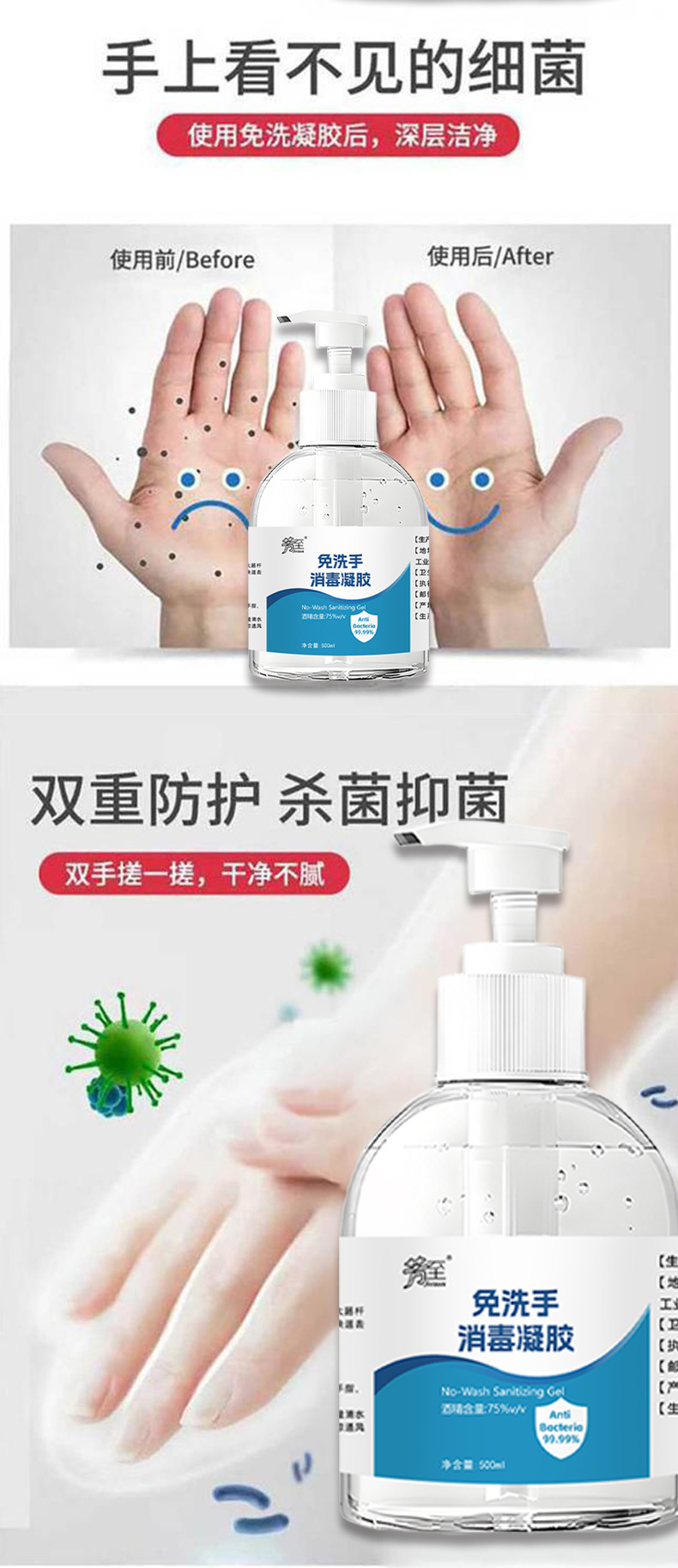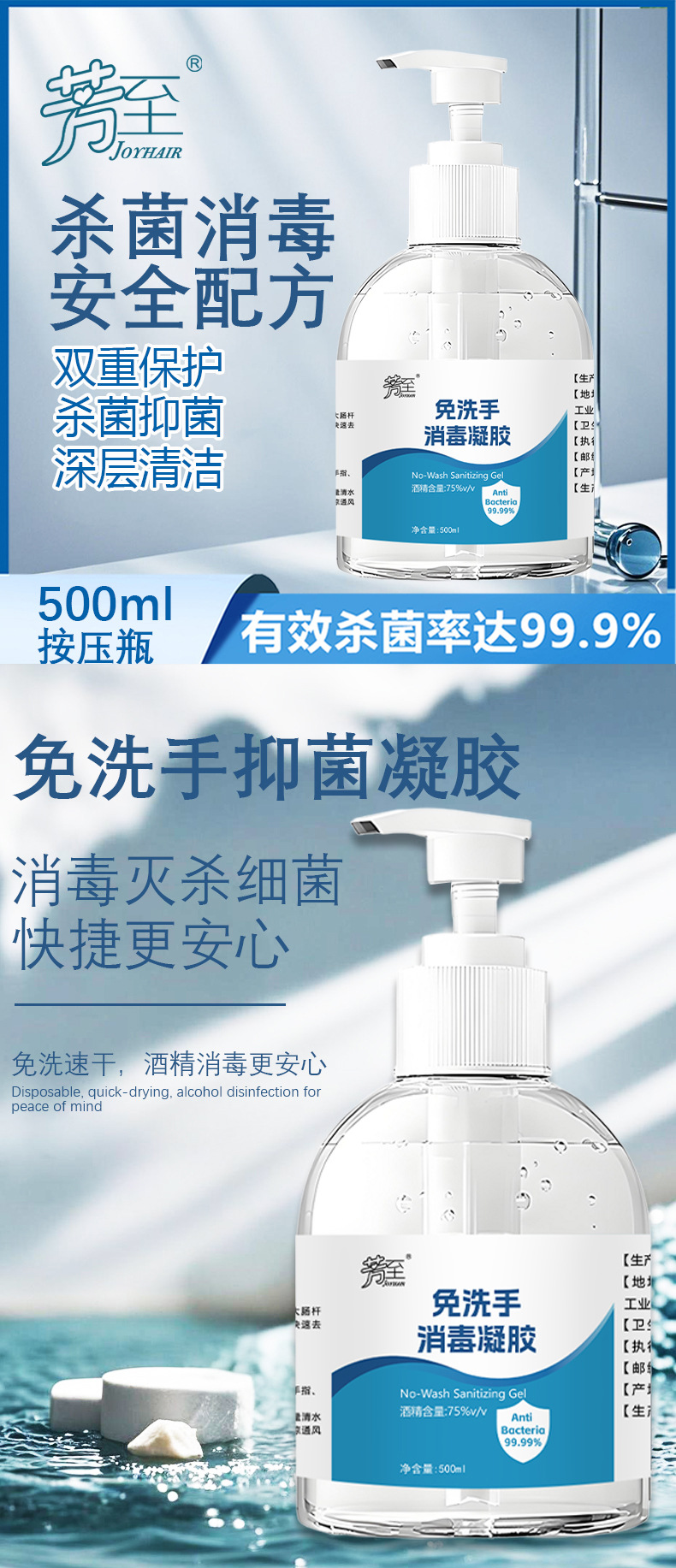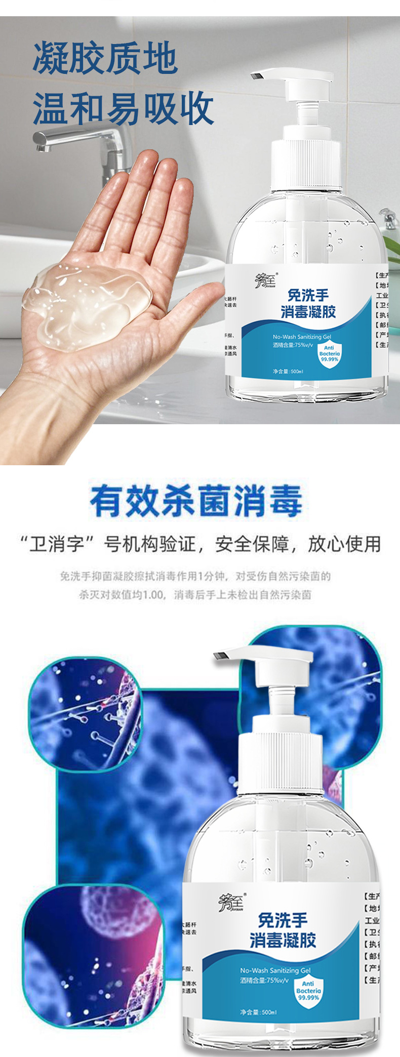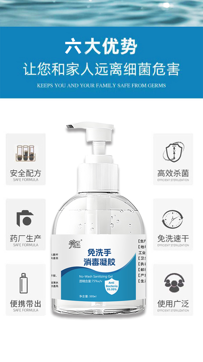 Дезинфицирующий гель без мытья, 500 мл, антибактериальный, 75% спирта, быстросохнущий и удобный студенческий бытовой дезинфицирующий дезинфицирующий гель для рук большой емкости