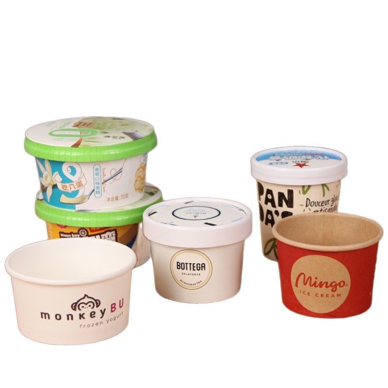 Одноразовые стаканчики для мороженого, стаканчики для мороженого на заказ с соответствующими бумажными крышками, стаканчики для мороженого, бумажные стаканчики для жареного йогурта, экспортные, с полиэтиленовым покрытием