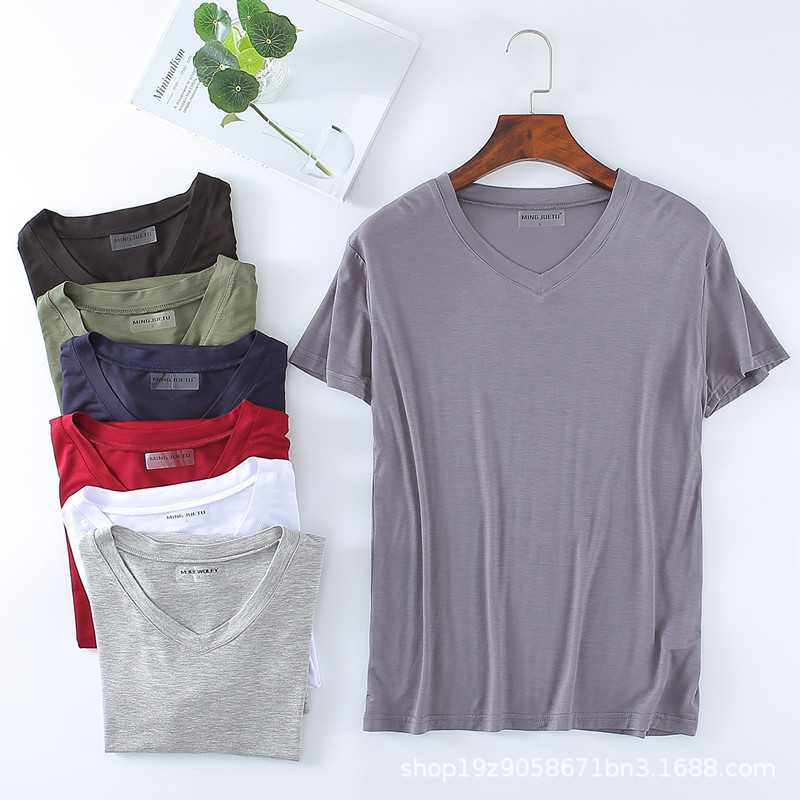 Мужская летняя тонкая футболка из модала с короткими рукавами и V-образным вырезом для людей среднего и пожилого возраста, высокая эластичность, большие размеры, оптовая продажа.