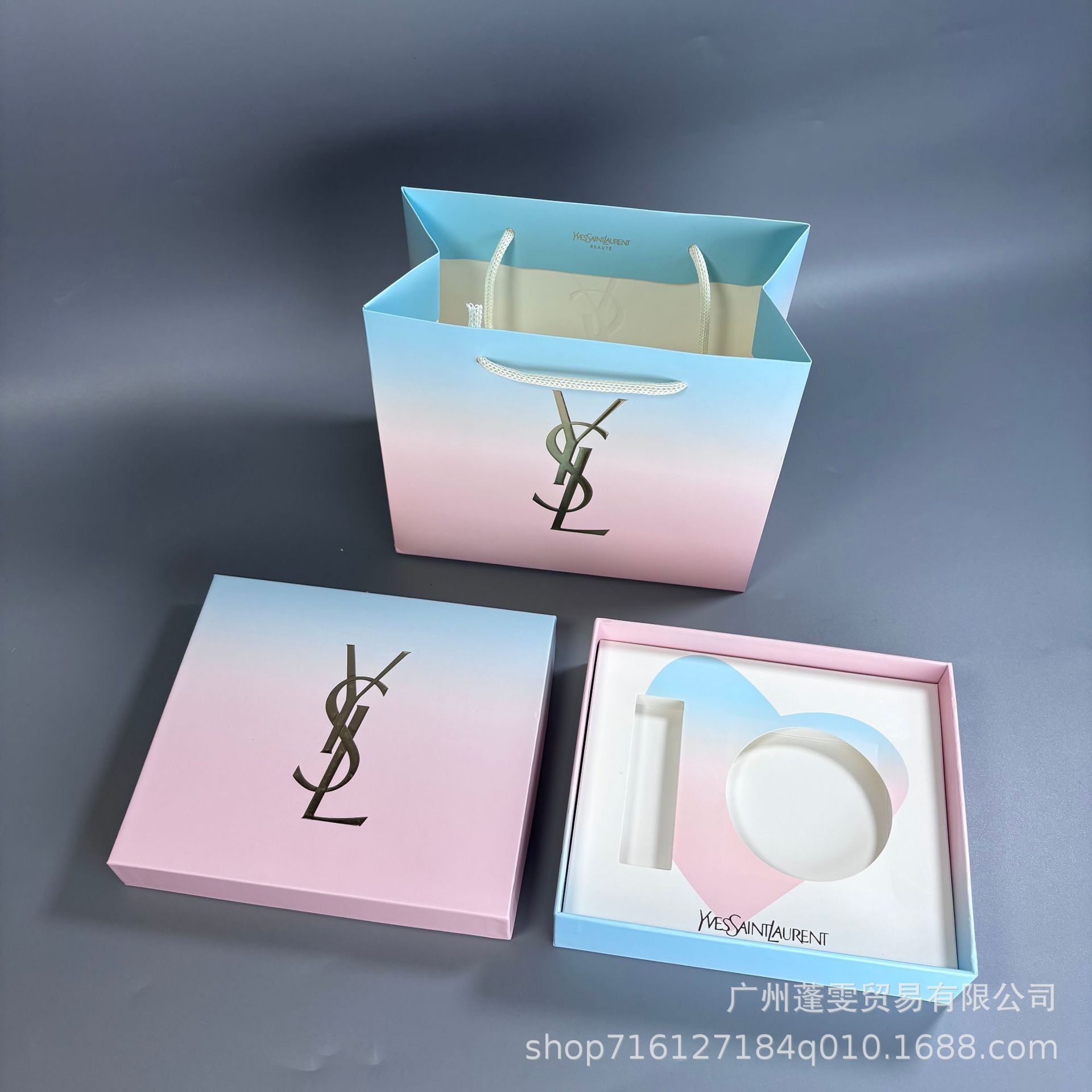 Набор для макияжа в подарочной упаковке: помада/блеск для губ, парфюмированная воздушная подушка, подарочная коробка, подарочная сумка