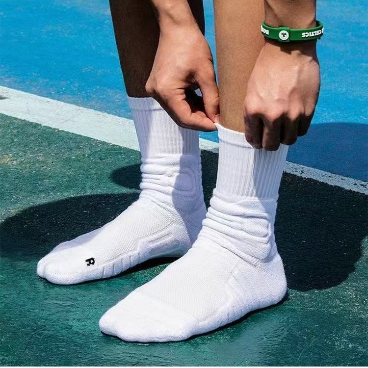 Профессиональные практичные американские баскетбольные носки из чистого хлопка, мужские средние высокие утолщенные нескользящие износостойкие спортивные носки с махровой подошвой, белые носки