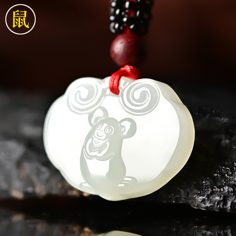 Подвеска из нефрита Хэтиан со знаком зодиака: крыса, бык, тигр, кролик, дракон, змея, лошадь, овца, обезьяна, курица, собака, свинья, нефритовая подвеска с замком безопасности для мужчин, женщин и детей