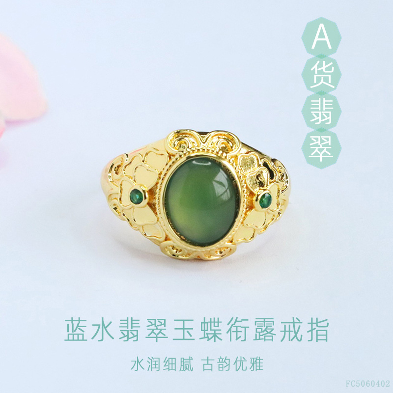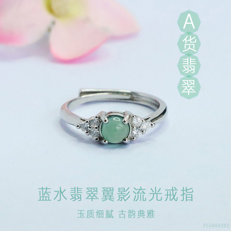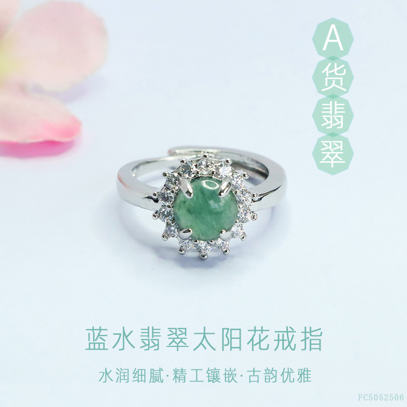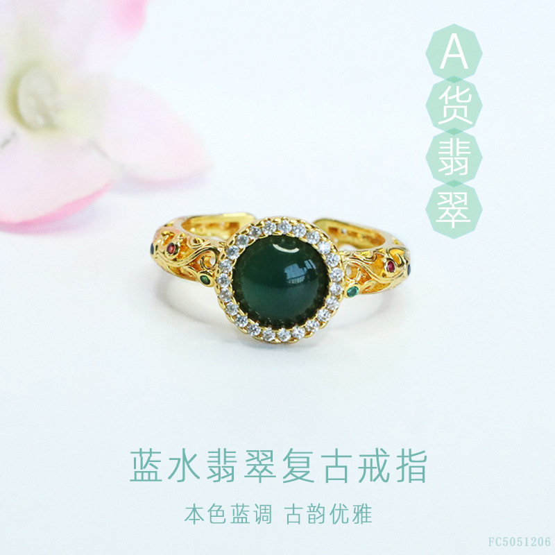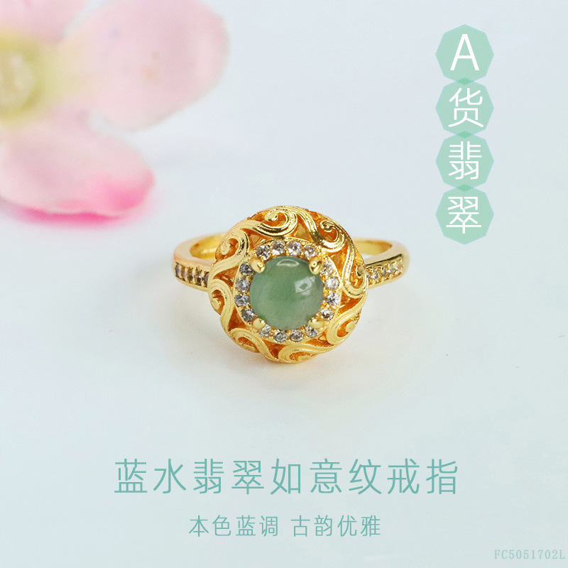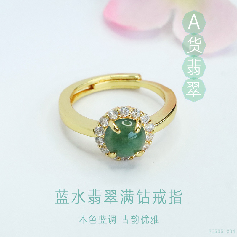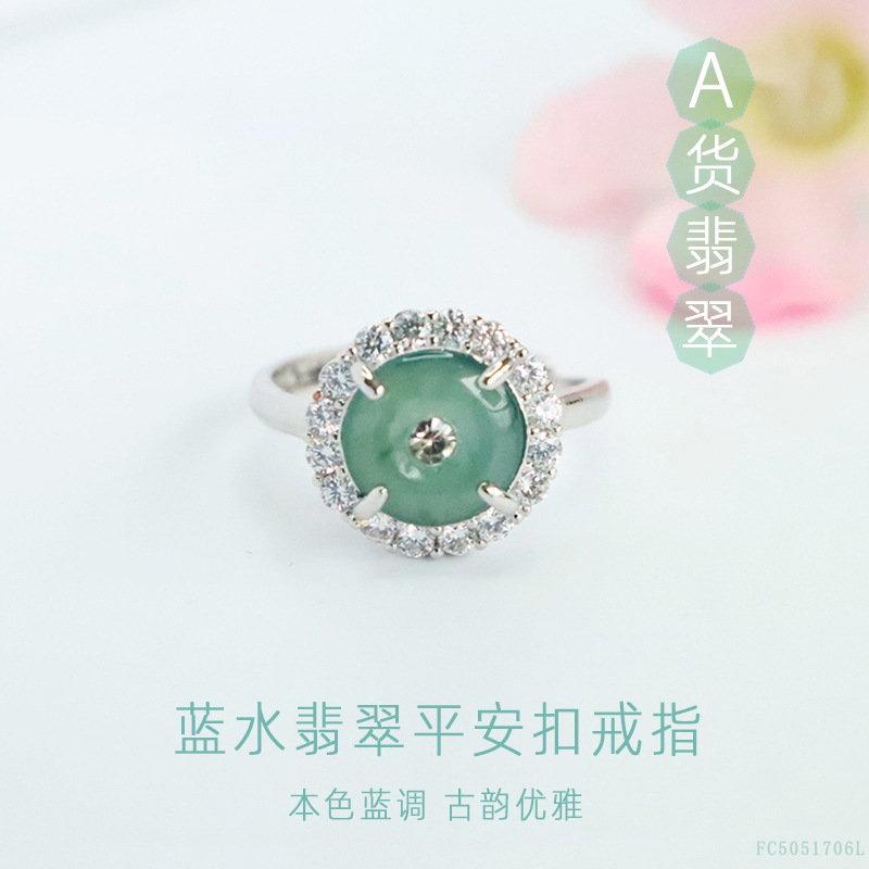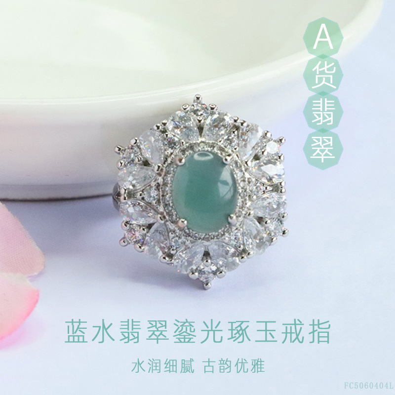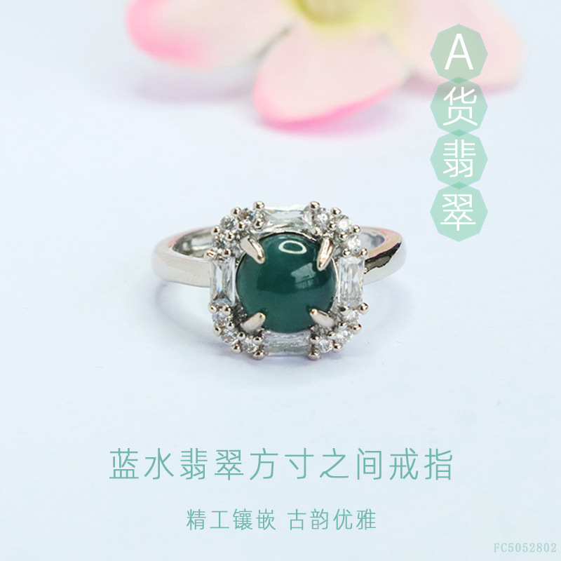Кольцо с натуральным нефритом Гуань Ю класса А, синий цвет, инкрустированное драгоценным камнем, оптовая продажа для прямых трансляций S5051704L