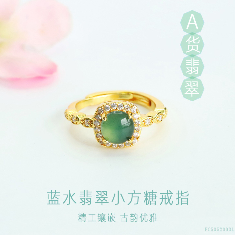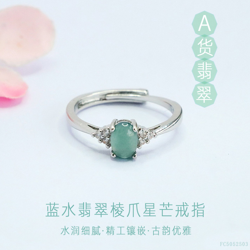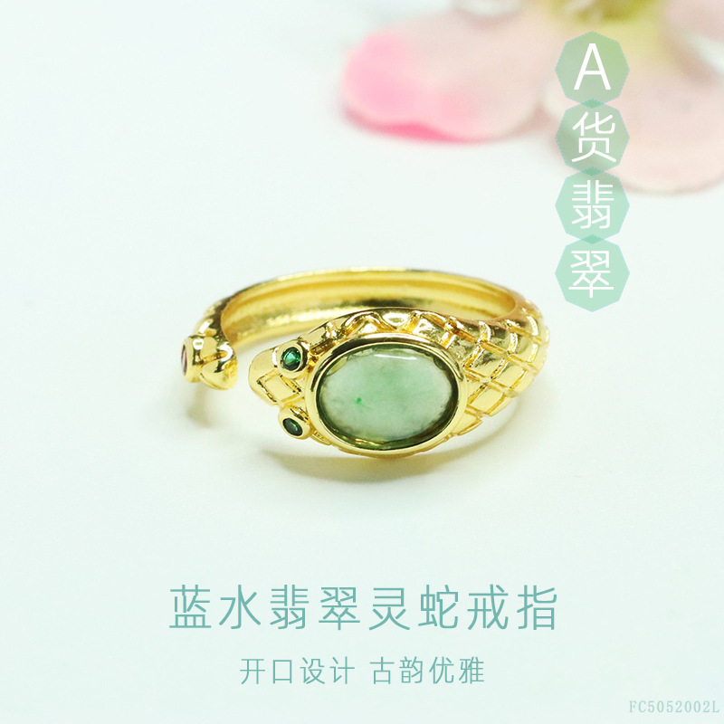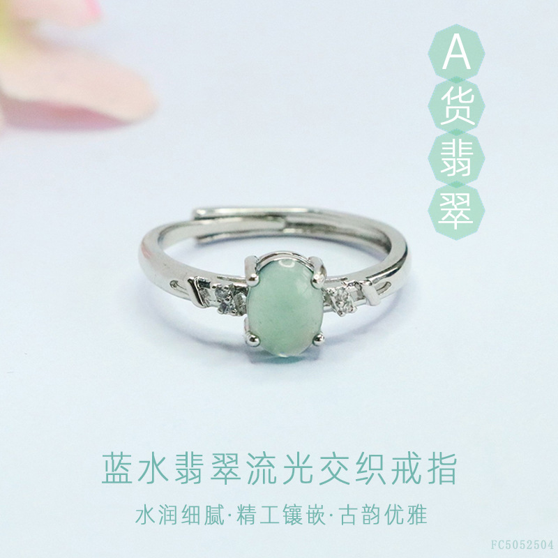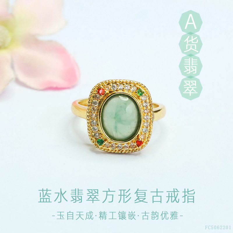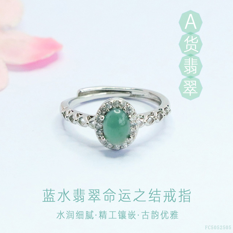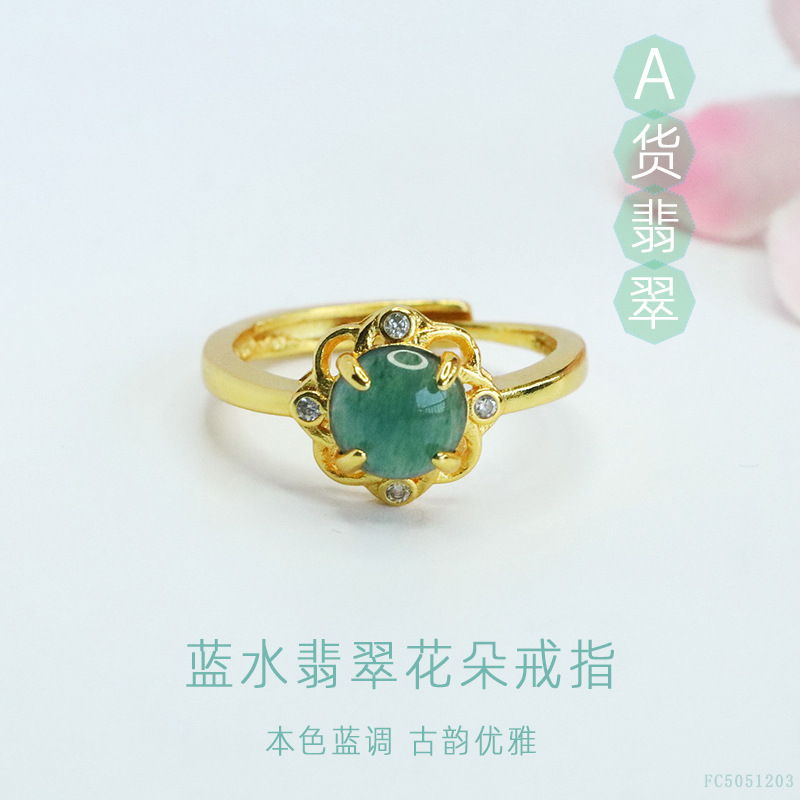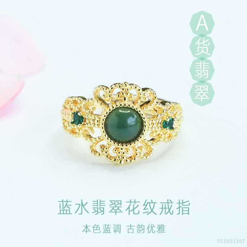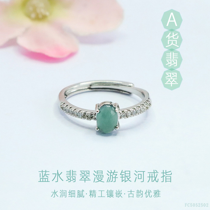 Кольцо с натуральным нефритом Гуань Ю класса А, синий цвет, инкрустированное драгоценным камнем, оптовая продажа для прямых трансляций S5051704L