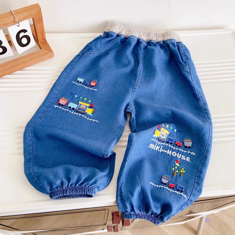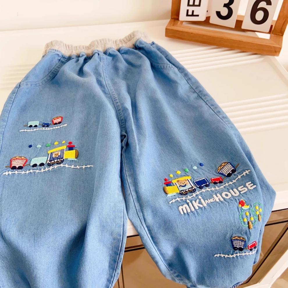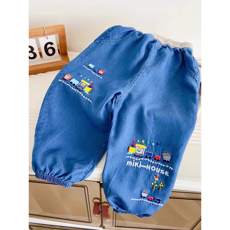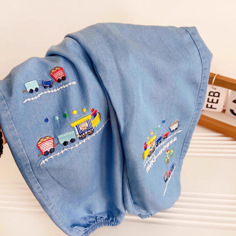 Детские тонкие штаны из ледяного шелка с защитой от комаров, вышитые маленьким узором в виде шлейфа, детские летние длинные штаны, штаны-фонарики для мальчиков и девочек