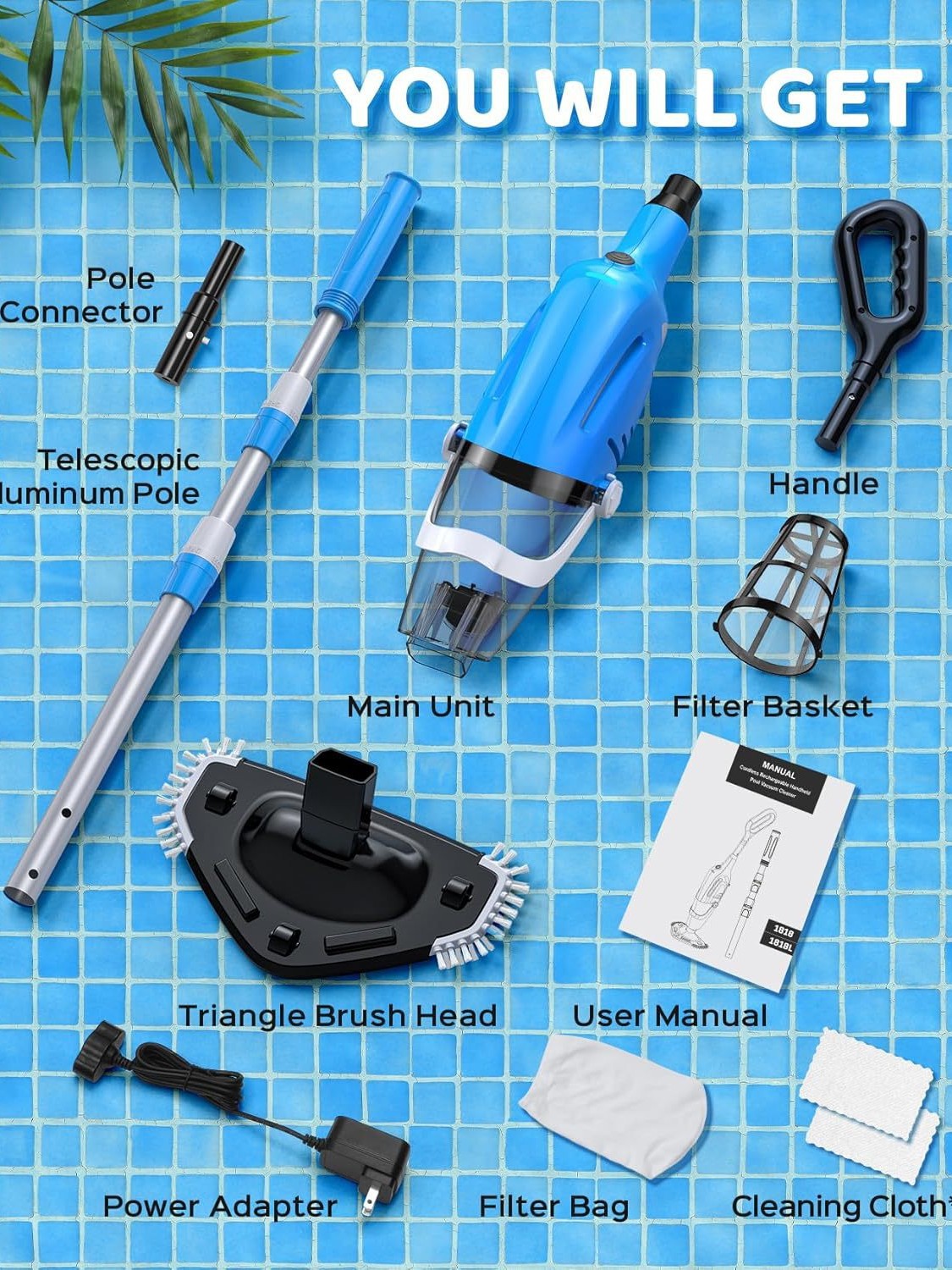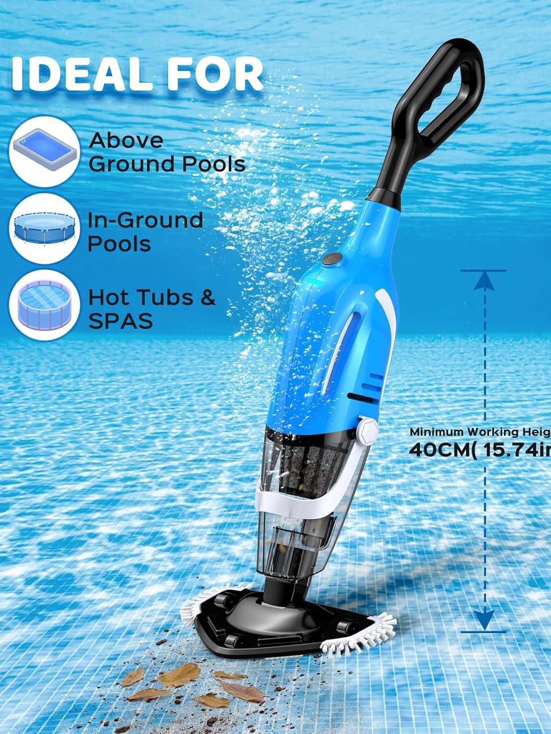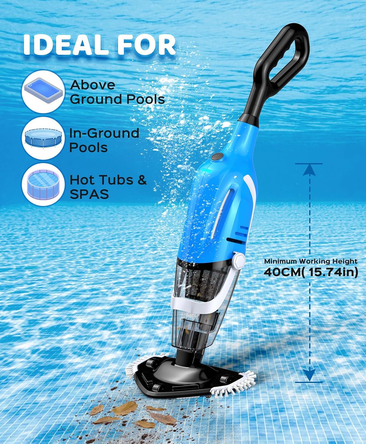 像专业人士一样清洁,不是新手: PureSwirlz 地面泳池真空吸尘器提供多种清洁选项;非常适合地面和地下游泳池、浴缸、水疗中心等;手持式泳池真空无绳的可调节伸缩杆可让您根据自己的喜好自定义长度;为了增加吸力,您可以拆卸扫头,使吸尘器在任何想要解决的区域进行有针对性的清洁