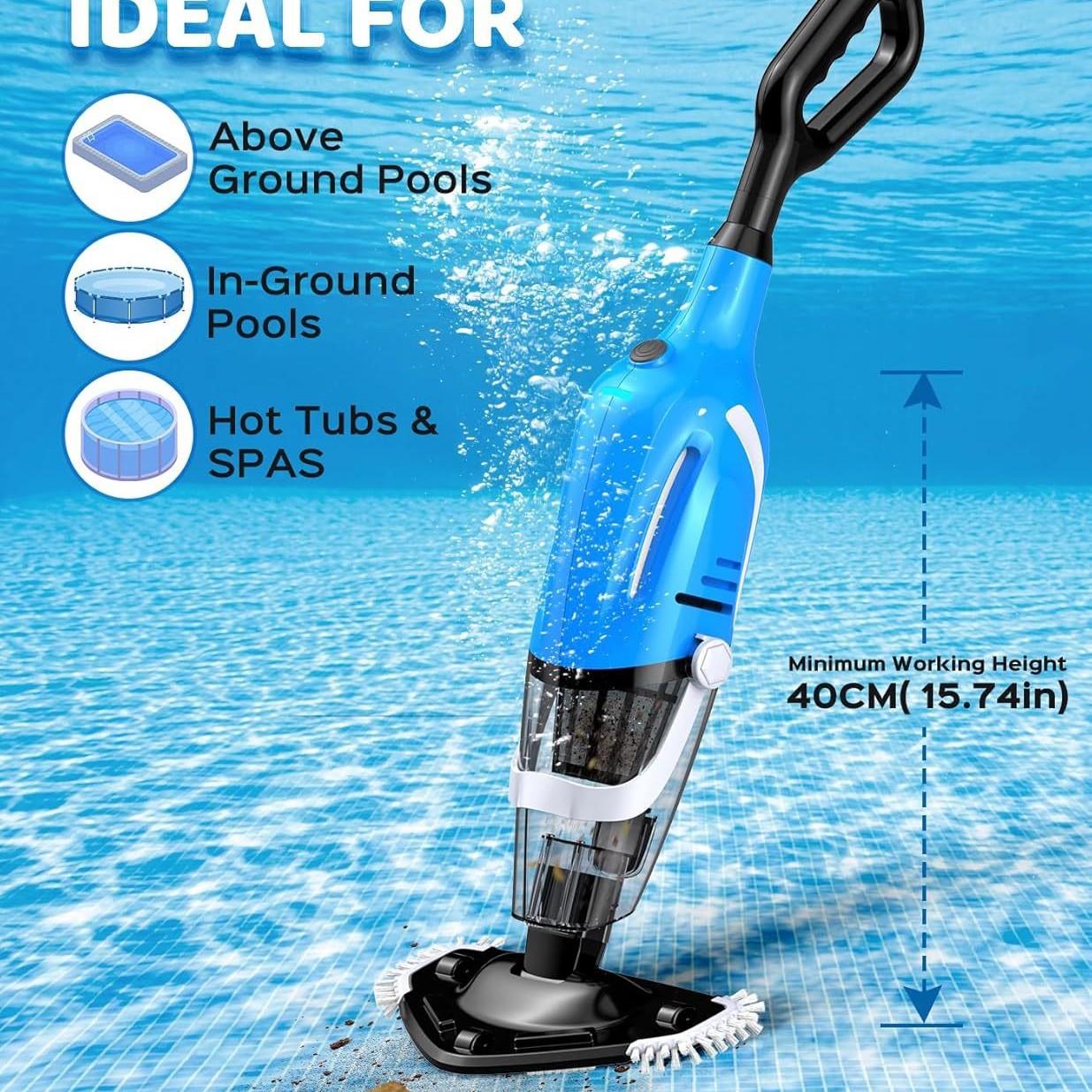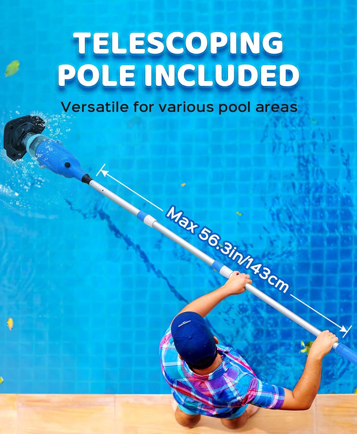 Беспроводной пылесос для бассейна Ручной перезаряжаемый пылесос с телескопической штангой, 80 минут работы Электрический