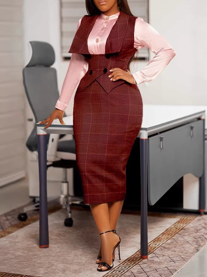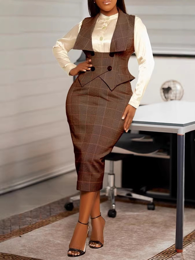 Европейский и американский кросс-бордерный костюм 2025 года: сексуальная юбка-карандаш в клетку с пуговицами, юбка-миди для Amazon и AliExpress