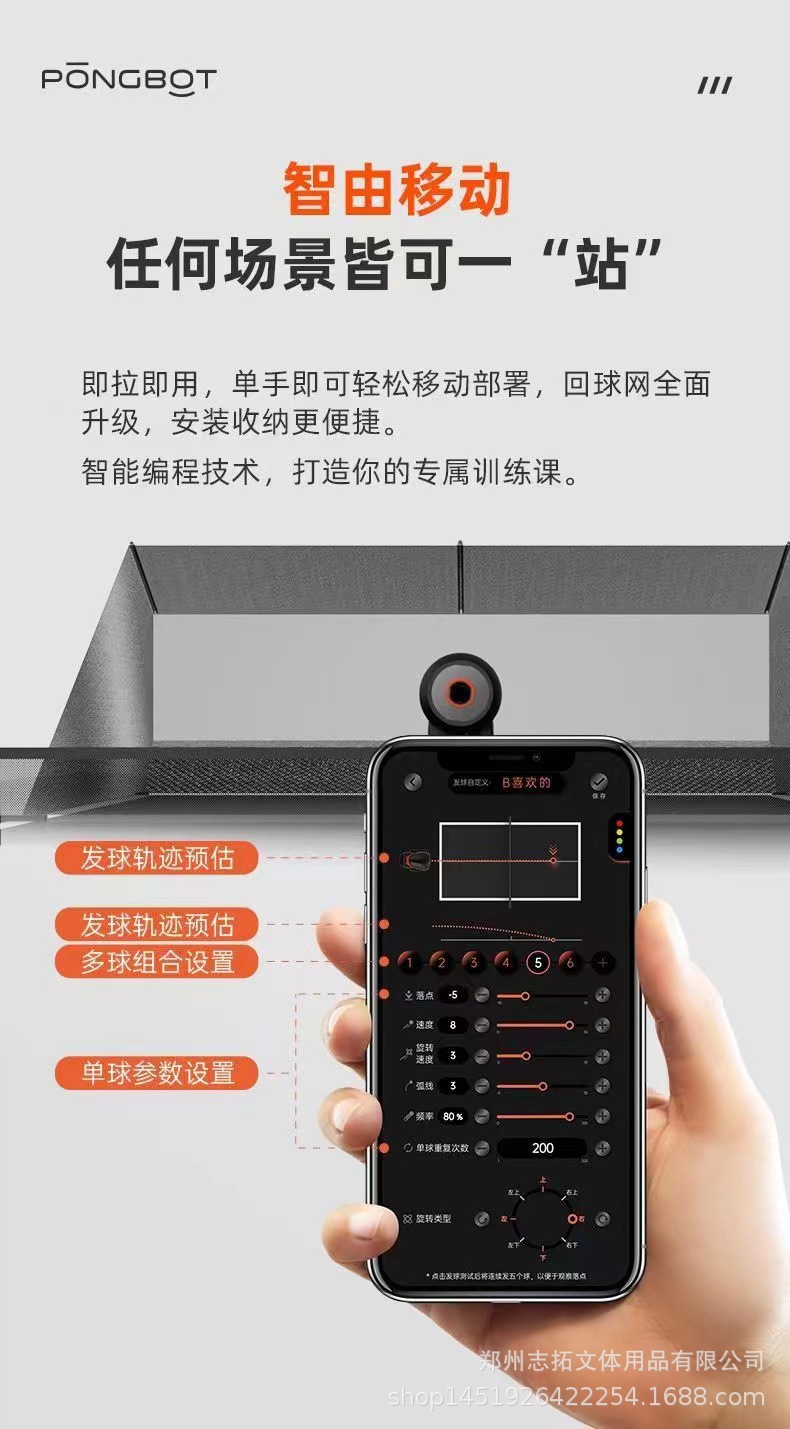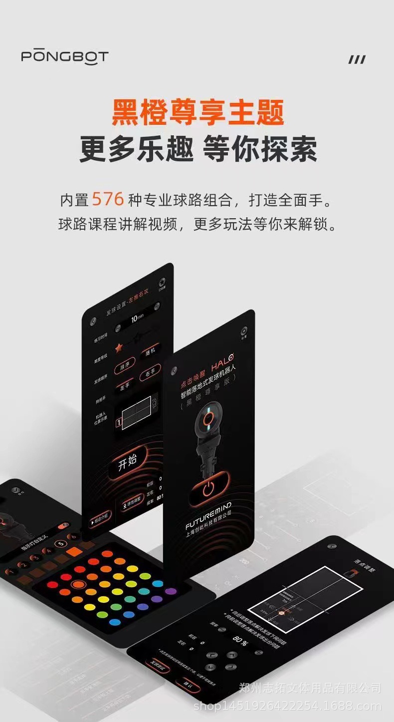 Умная машина для подачи мячей, напольная машина для подачи мячей, машина для подачи мячей Black Orange PRO, машина для подачи мячей для настольного тенниса HALO Black Orange