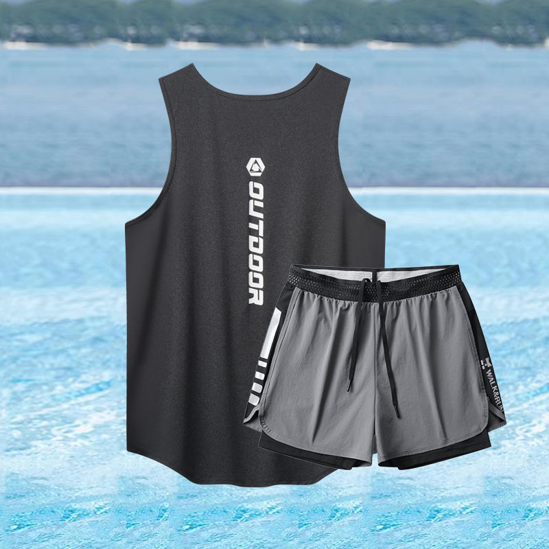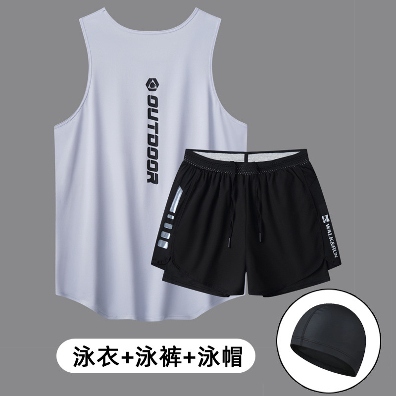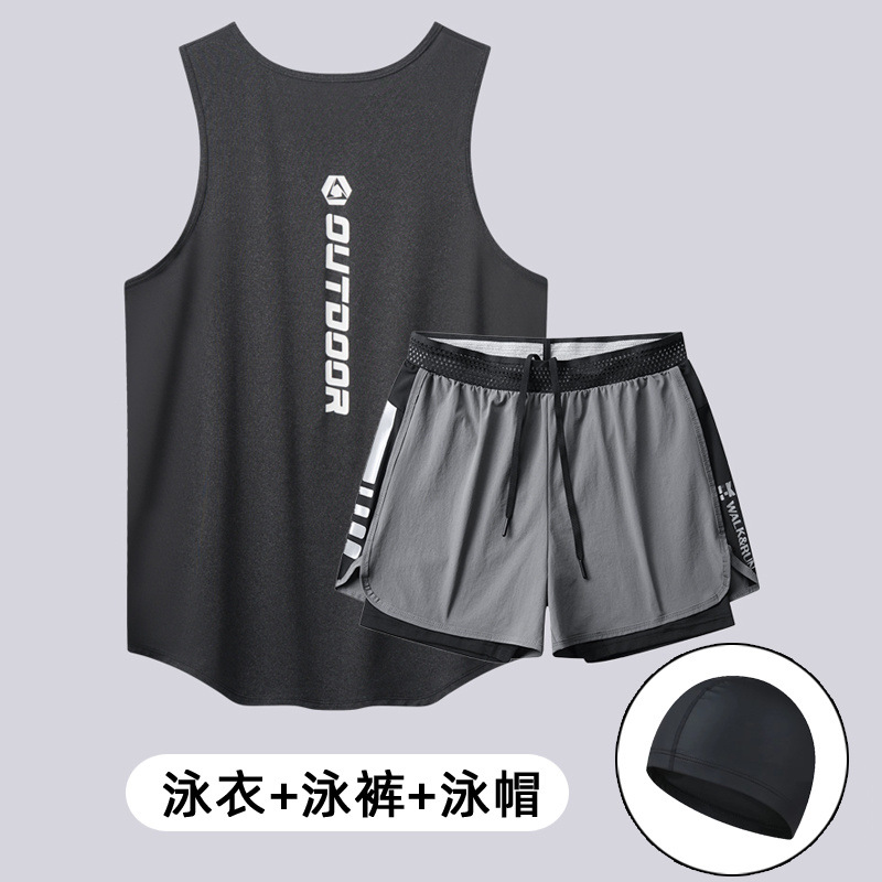 Мужской купальный костюм, свободные и не стыдящие двухслойные плавки, быстросохнущий жилет, купальник для взрослых из двух частей с горячими источниками.
