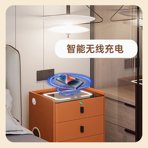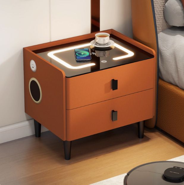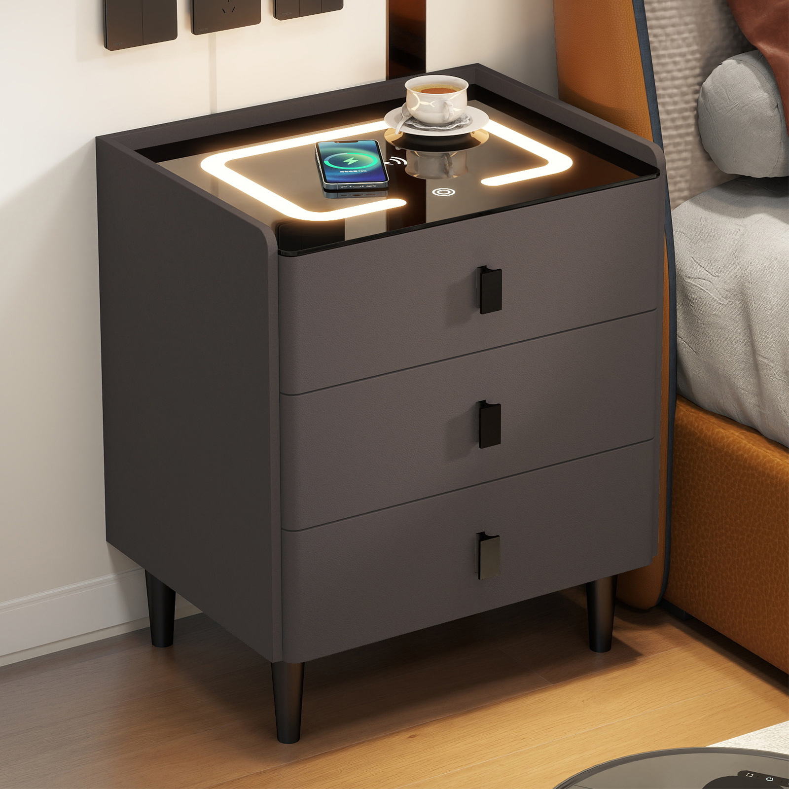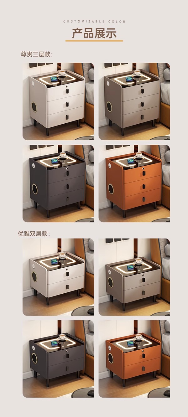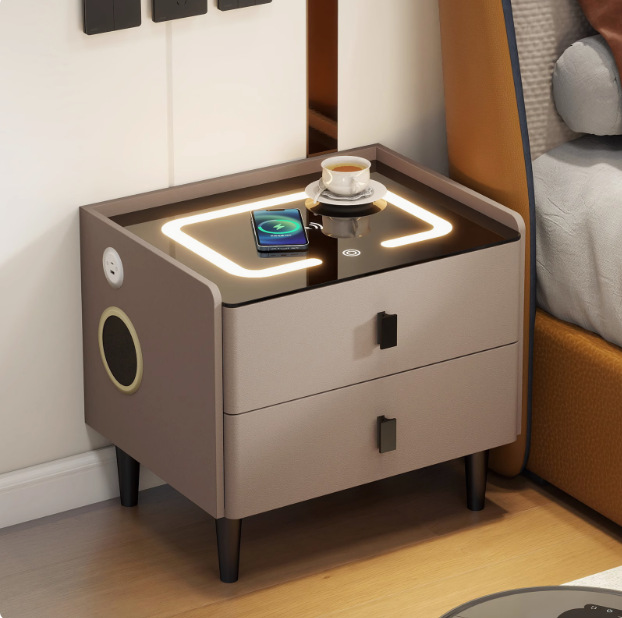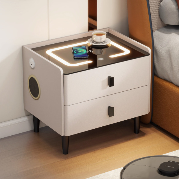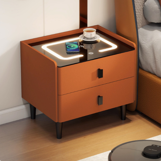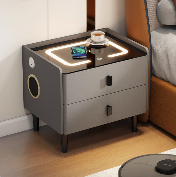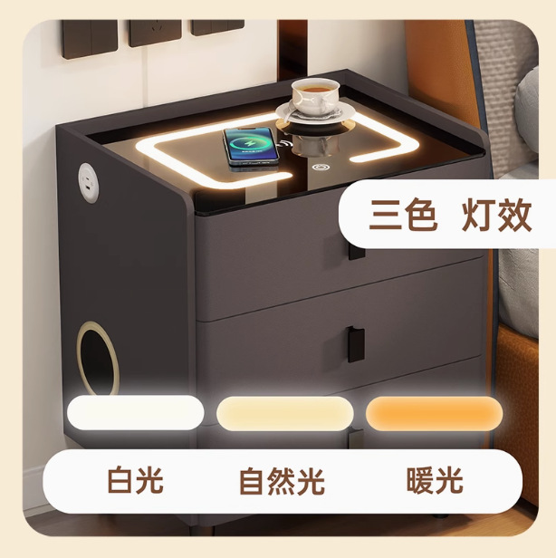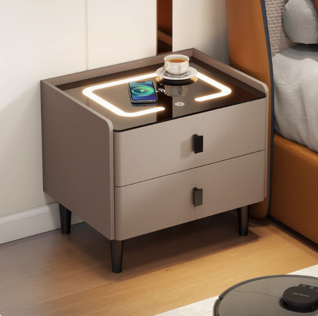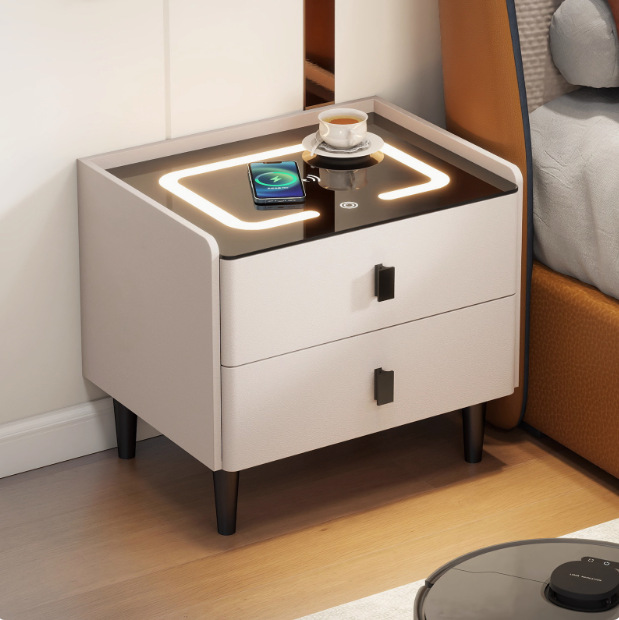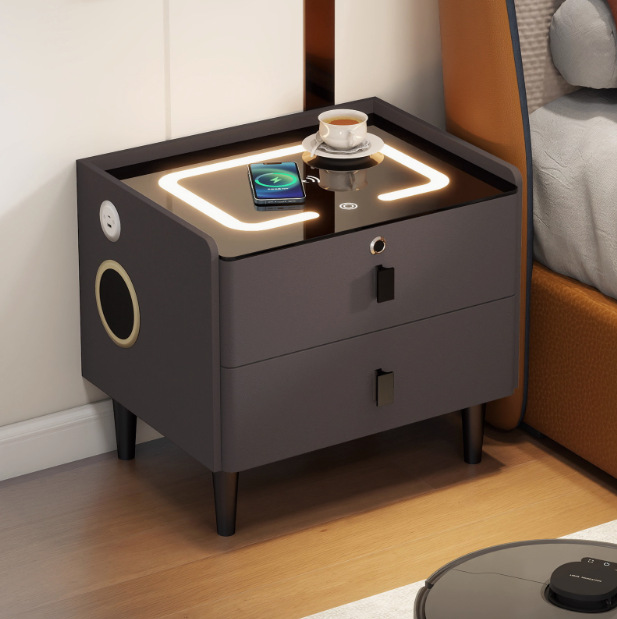 Умная прикроватная тумбочка из цельного дерева со светодиодной подсветкой, датчиком отпечатков пальцев, простой современной спальни, нулевой прикроватной лампой класса люкс.
