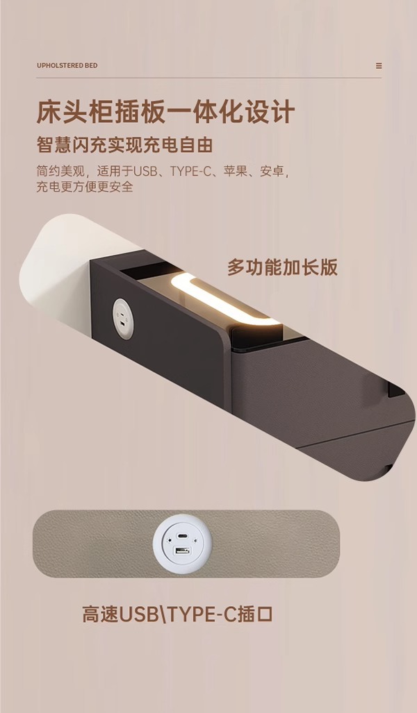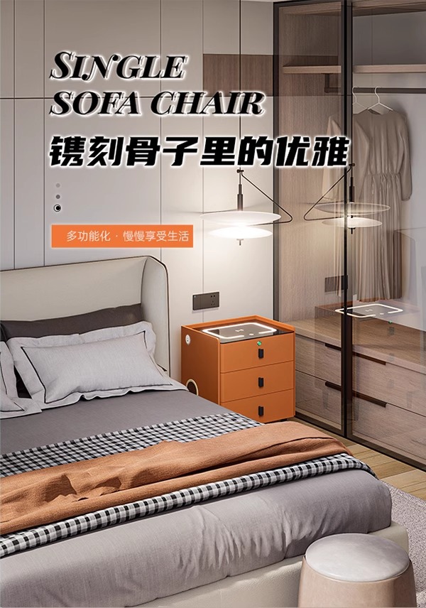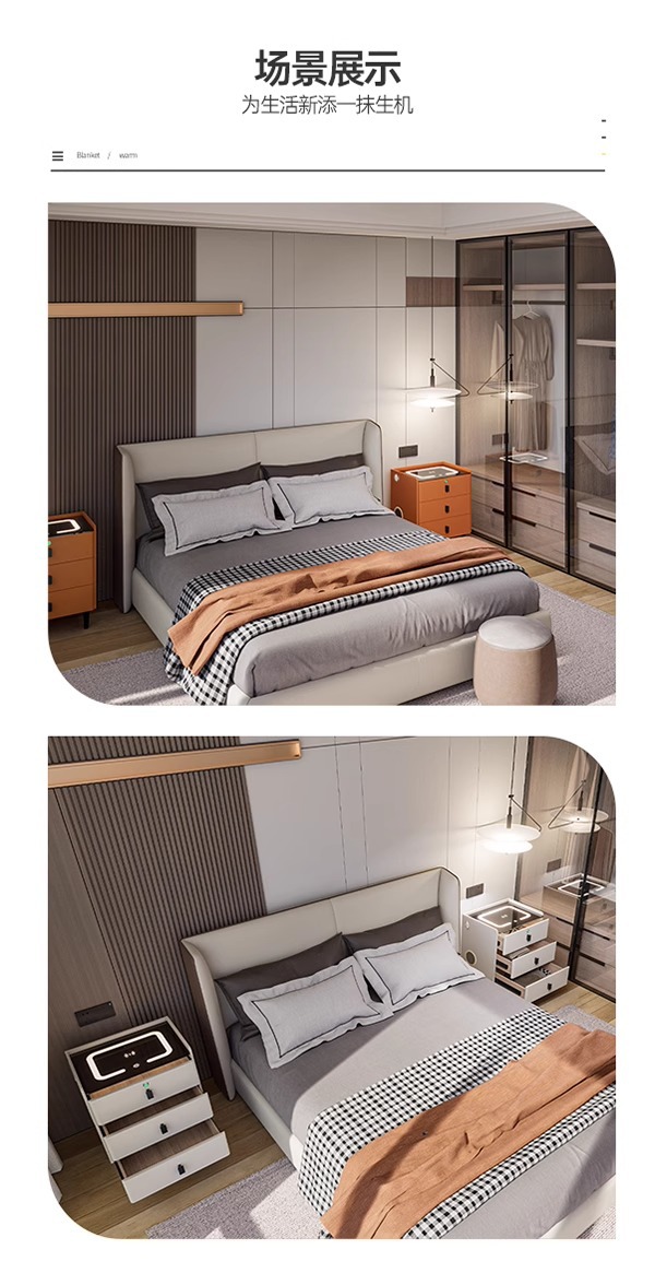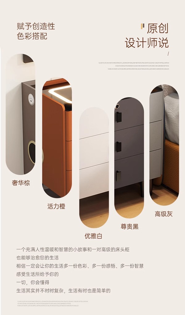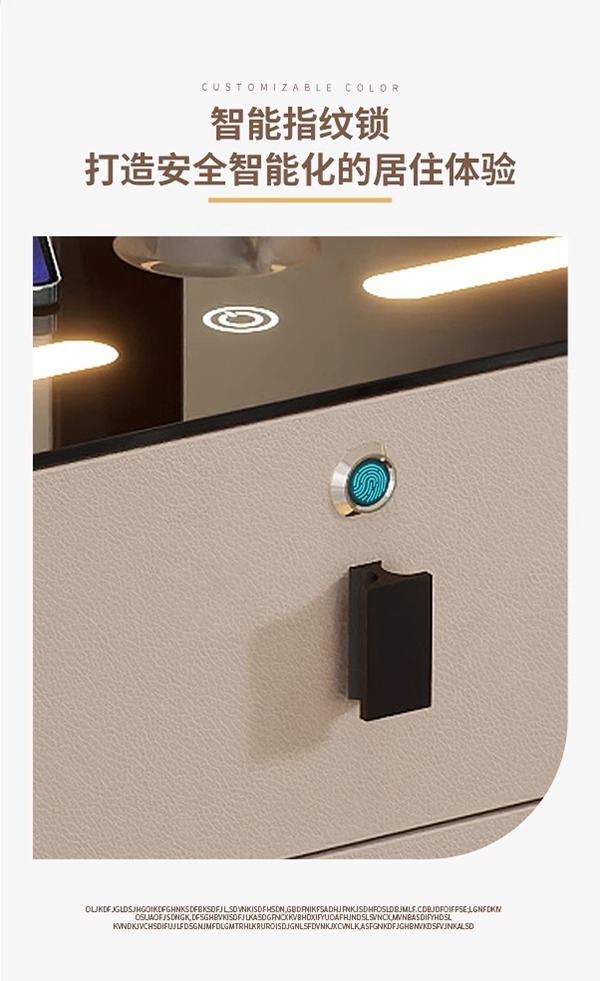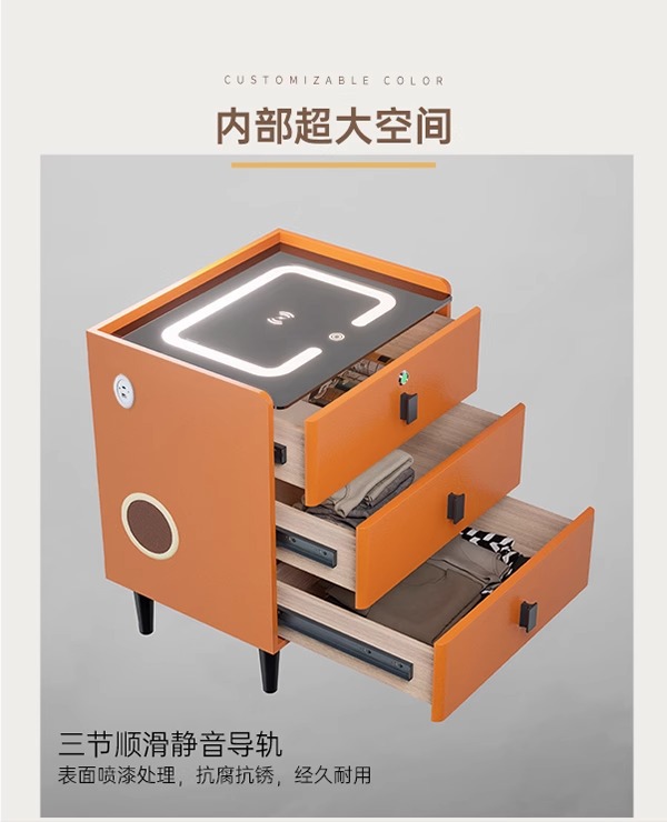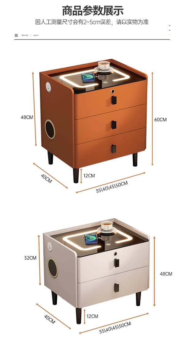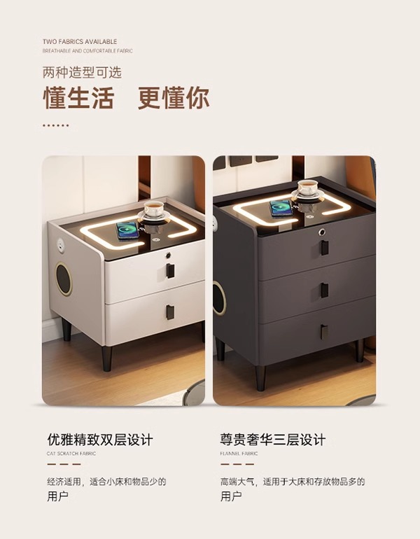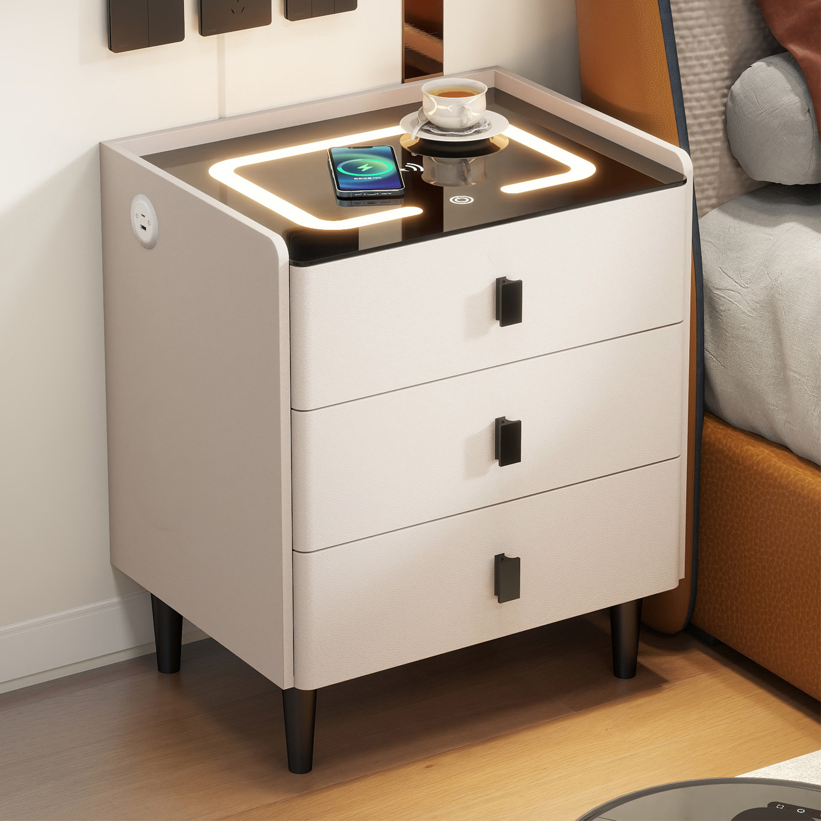 Умная прикроватная тумбочка из цельного дерева со светодиодной подсветкой, датчиком отпечатков пальцев, простой современной спальни, нулевой прикроватной лампой класса люкс.