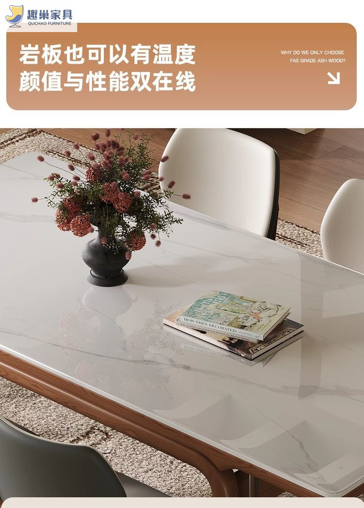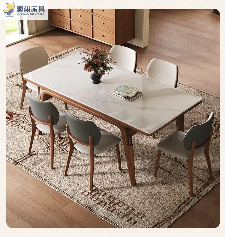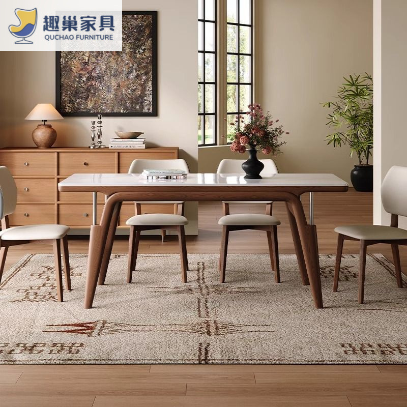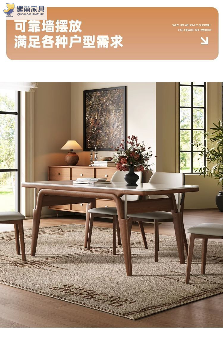 Обеденный стол из скандинавского сланца, современный и простой, обеденный стол цвета орех, обеденный стол из массива ясеня для небольшой квартиры, из натурального дерева