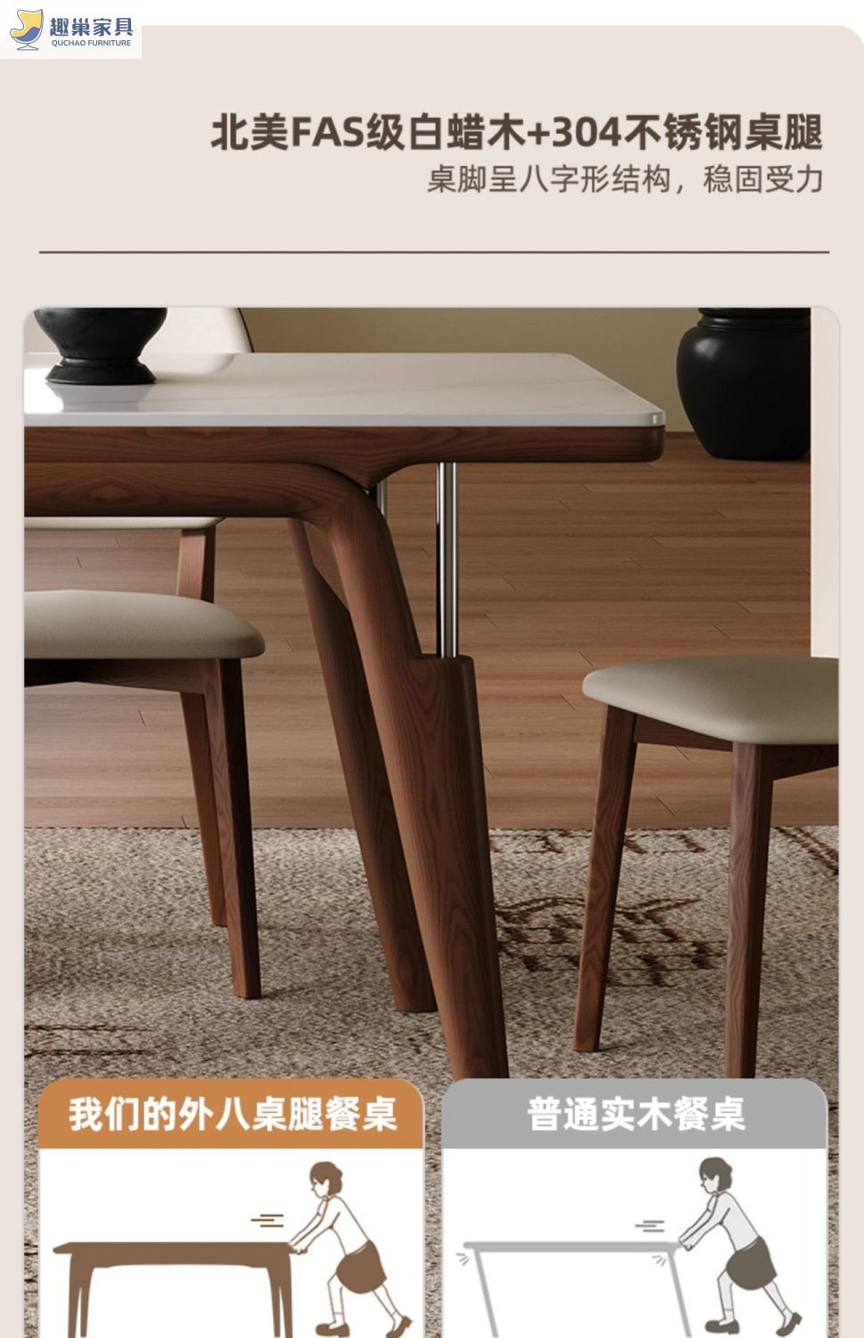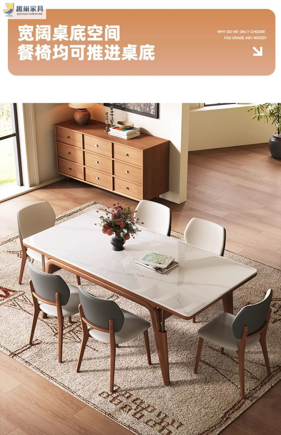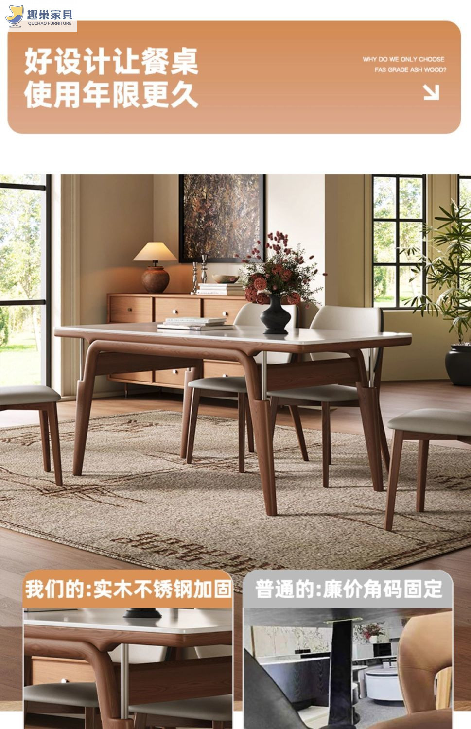 Обеденный стол из скандинавского сланца, современный и простой, обеденный стол цвета орех, обеденный стол из массива ясеня для небольшой квартиры, из натурального дерева