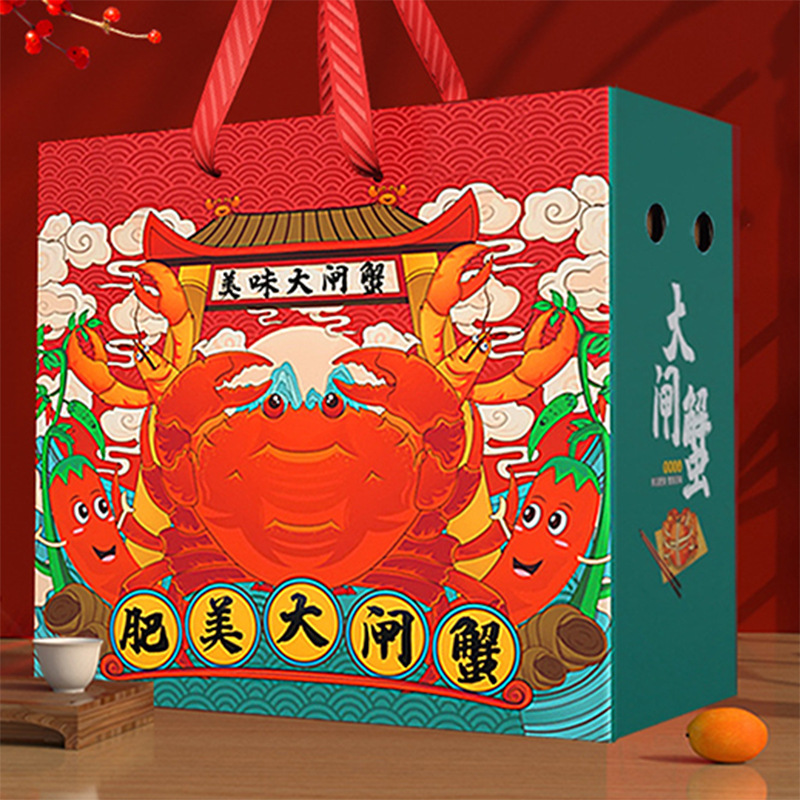 Рекламная бутиковая портативная подарочная коробка, подарочная коробка с волосатым крабом, набор подарочных пакетов, производитель портативных подарочных коробок, подарочных пакетов для сельскохозяйственных и прилобных продуктов