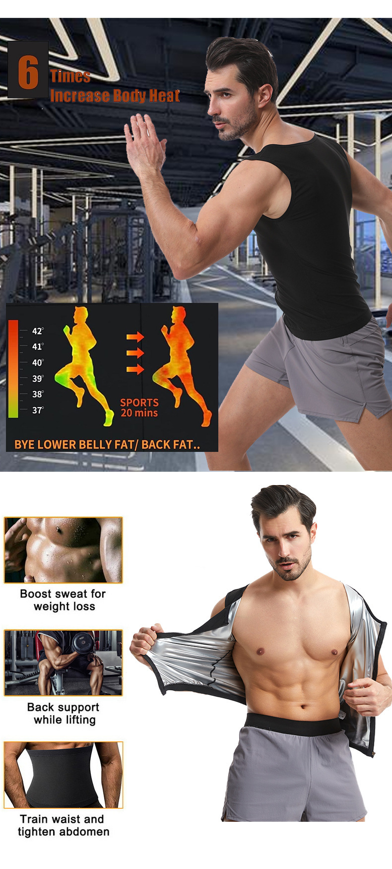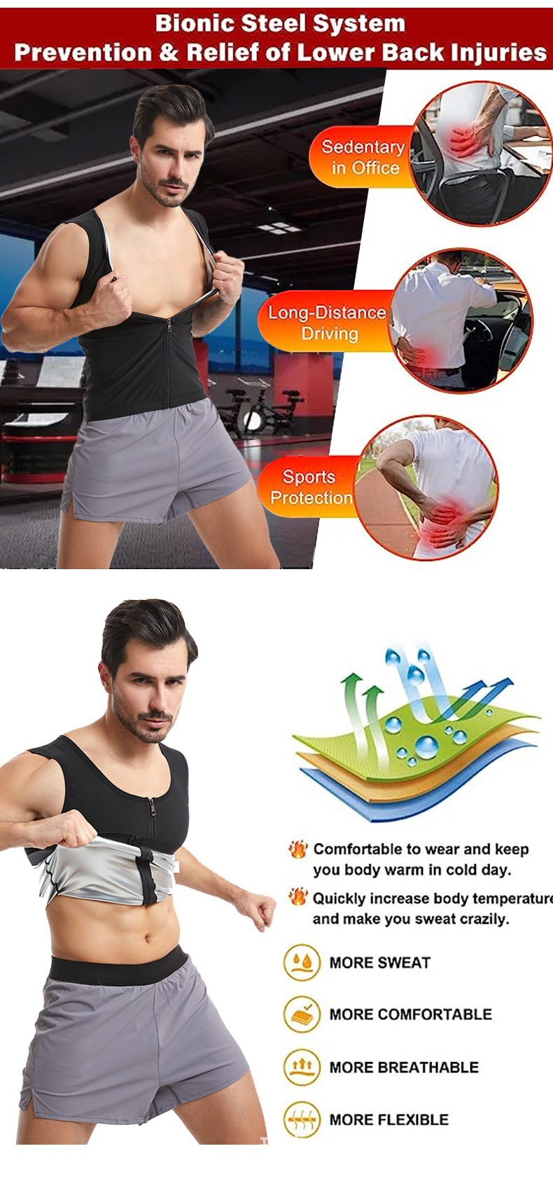 Мужской спортивный жилет-корсет с молнией для сауны, влагоотводящий, корректирующий фигуру, для фитнеса