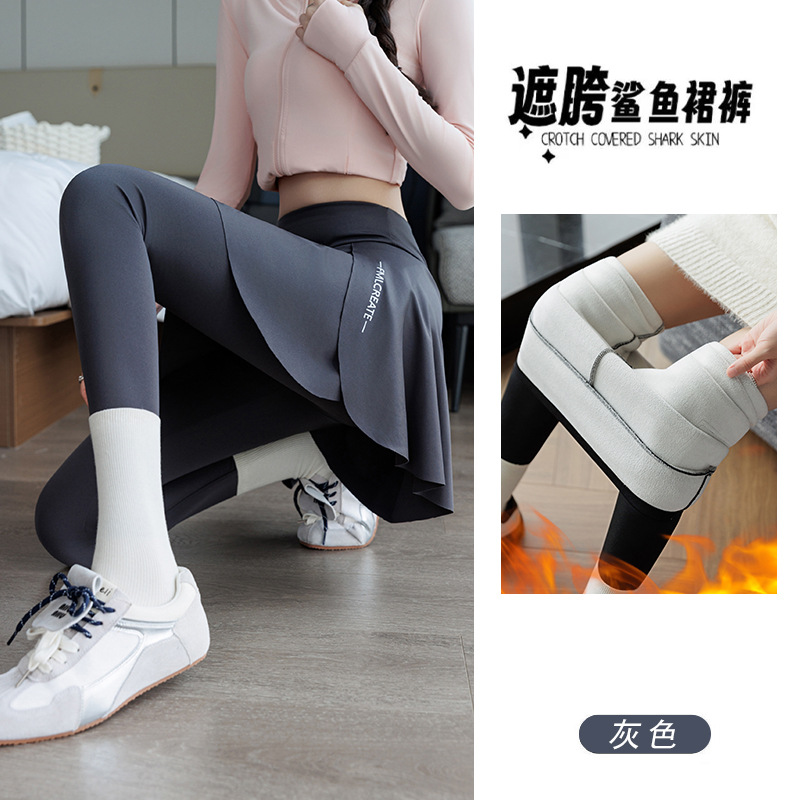 Женские фитнес-брюки, имитация двухслойных, с защитой от просвечивания, облегающие, эластичные, длинные юбки-брюки для йоги, спортивные брюки для бега на флисовой подкладке