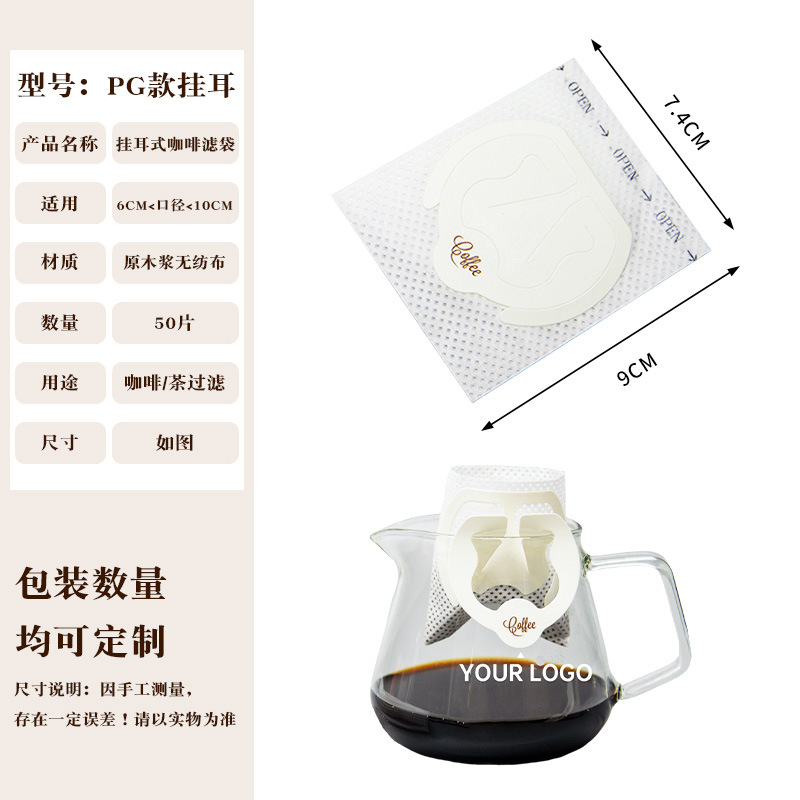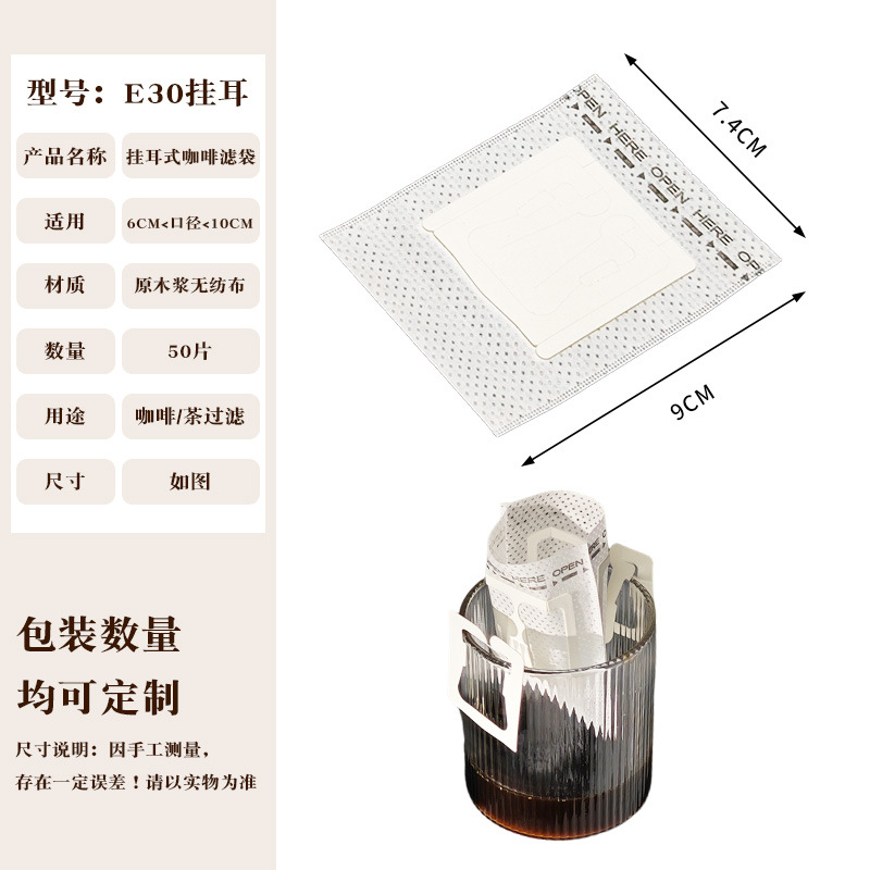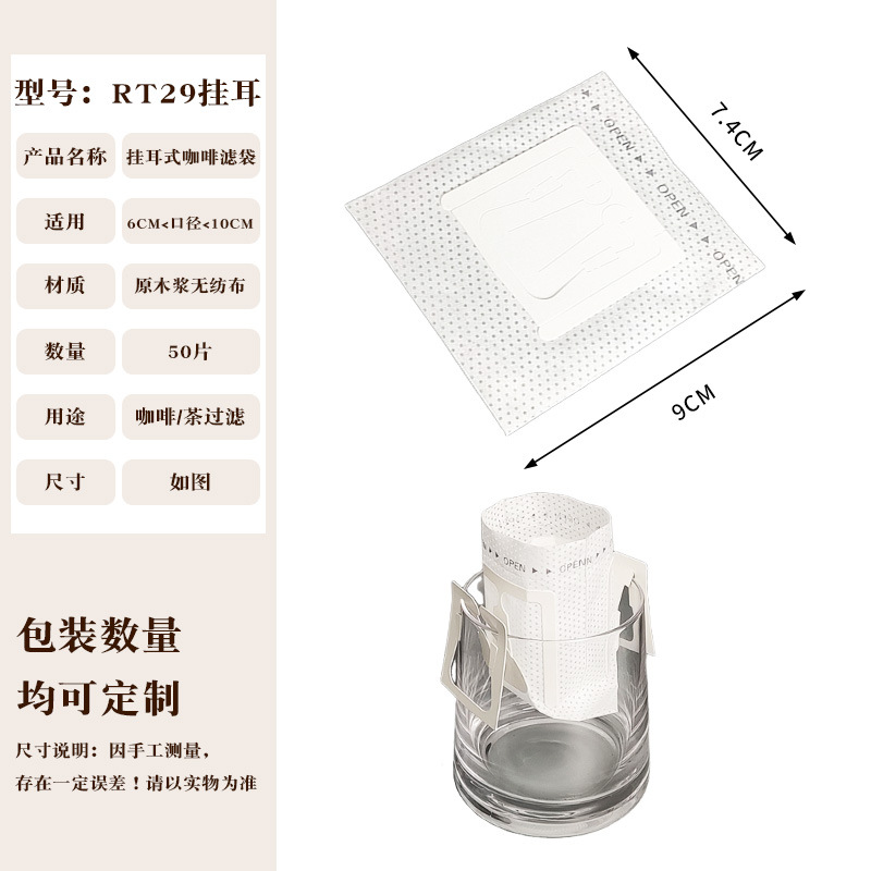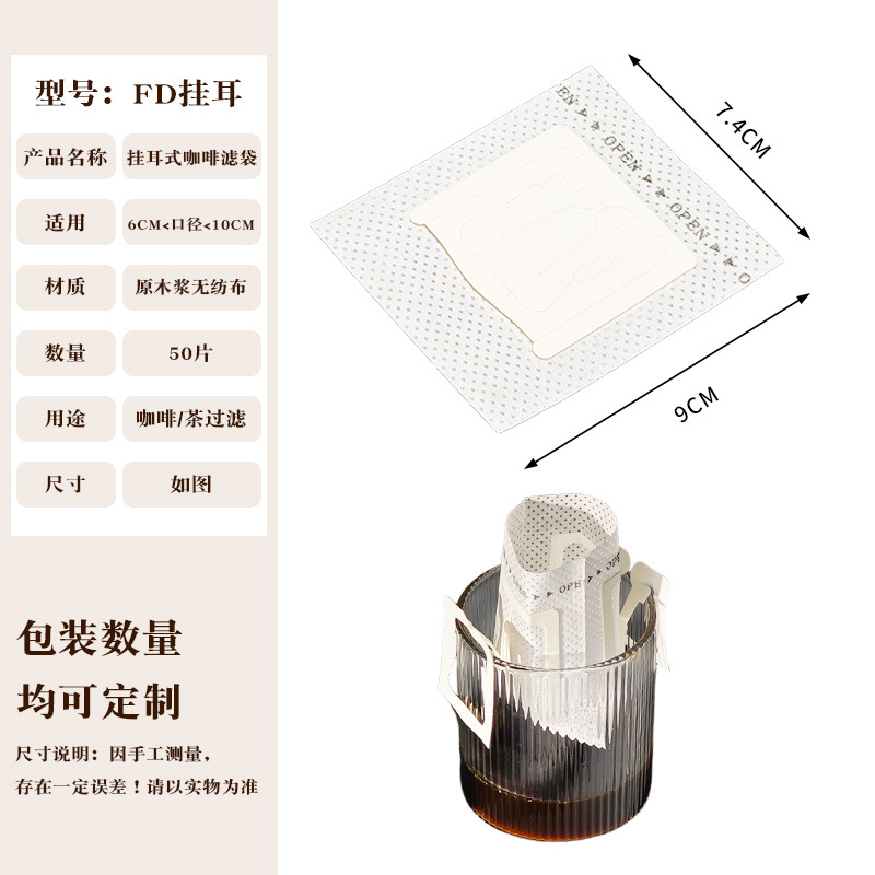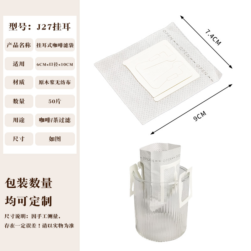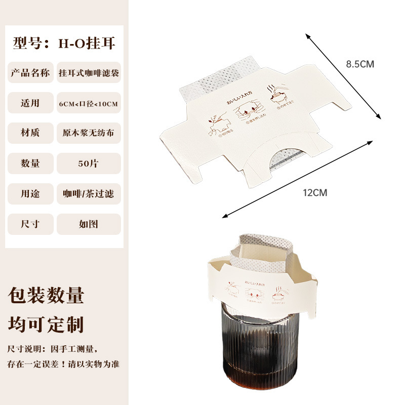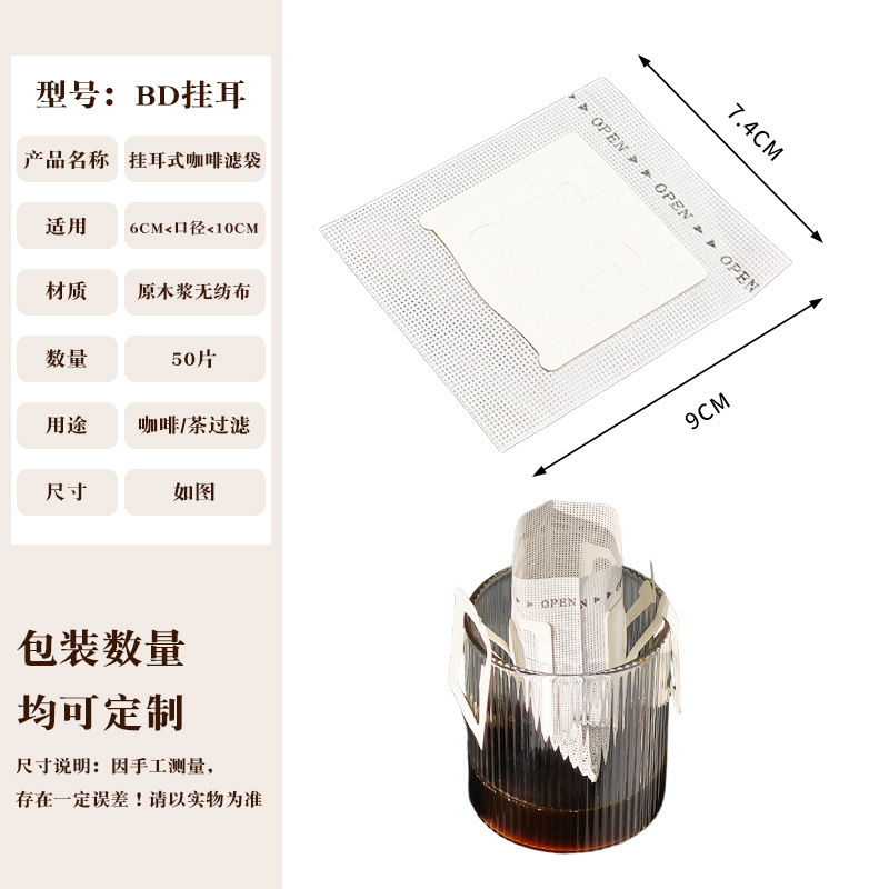 Эксклюзивная трансграничная поставка: фильтр-бумага для кофе, портативные фильтр-пакеты с ушками для подвешивания, 50 штук, пищевой материал, совместимы с фильтр-кружками для ручного заваривания.