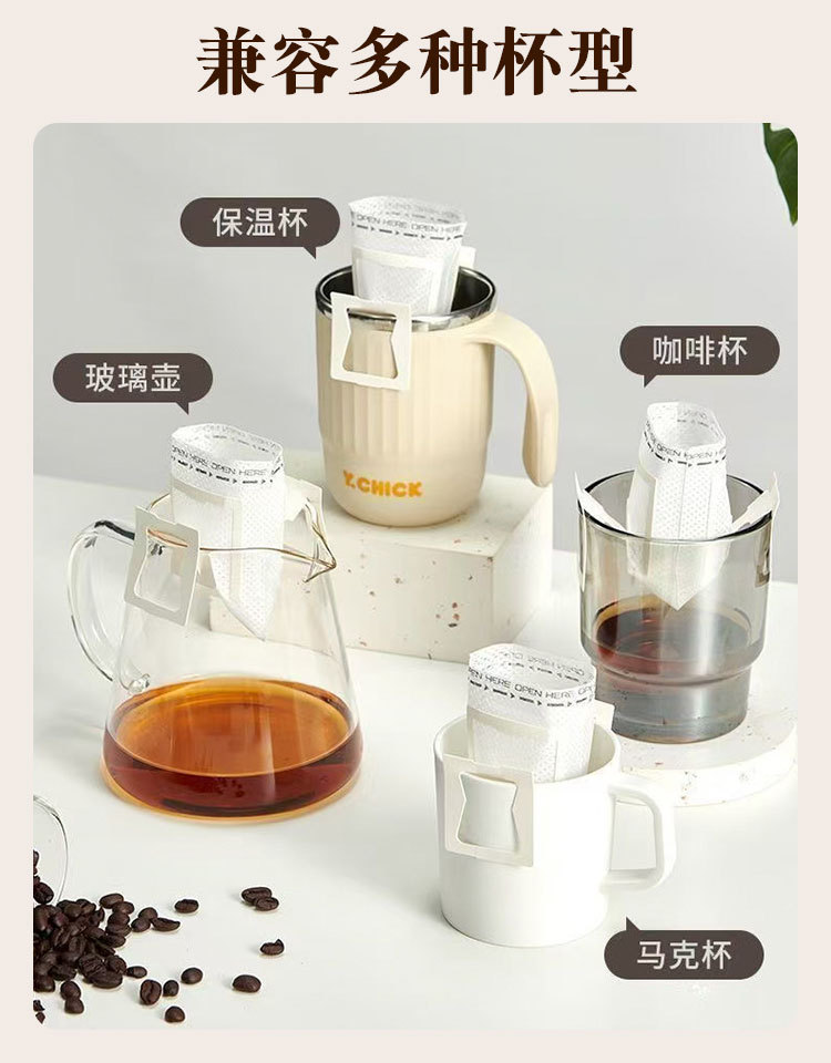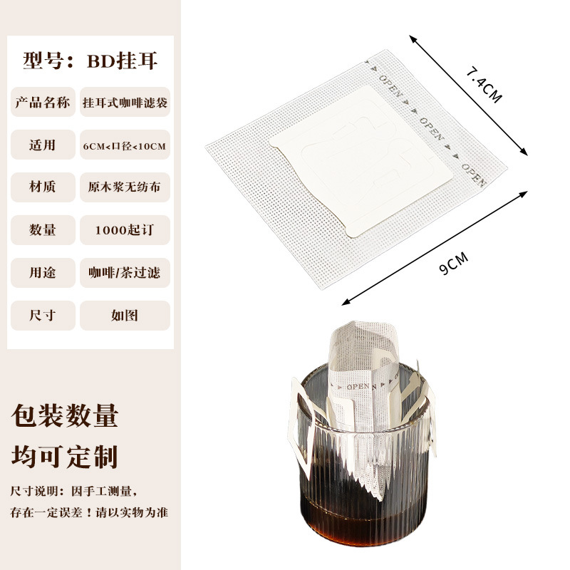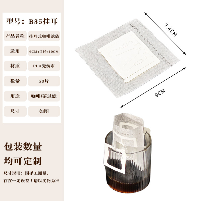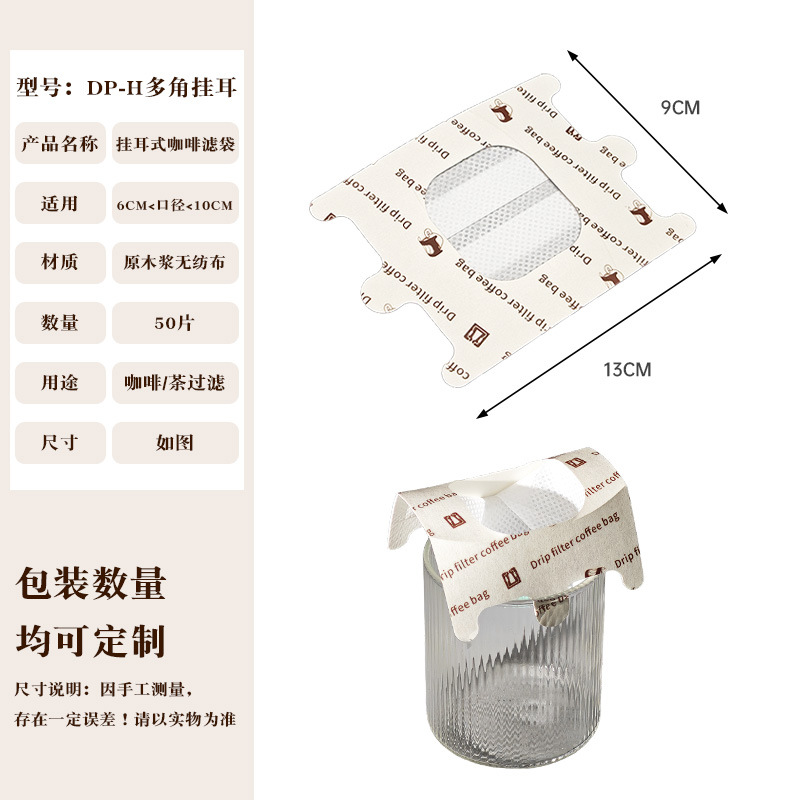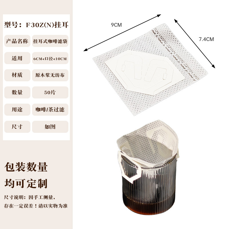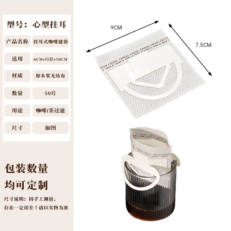 Эксклюзивная трансграничная поставка: фильтр-бумага для кофе, портативные фильтр-пакеты с ушками для подвешивания, 50 штук, пищевой материал, совместимы с фильтр-кружками для ручного заваривания.