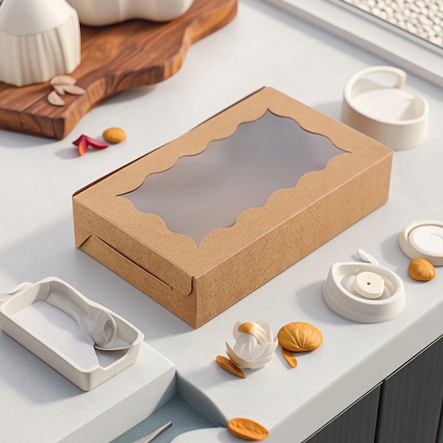 Коробка для выпечки и десертов из белого картона с окошком, упаковка для тортов и печенья, крафт-бумага, на заказ, для Amazon и TEMU