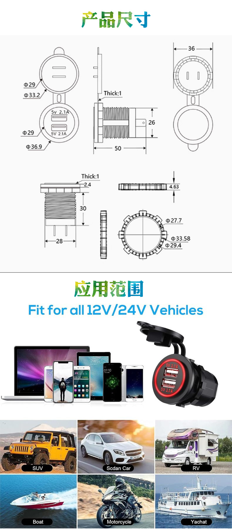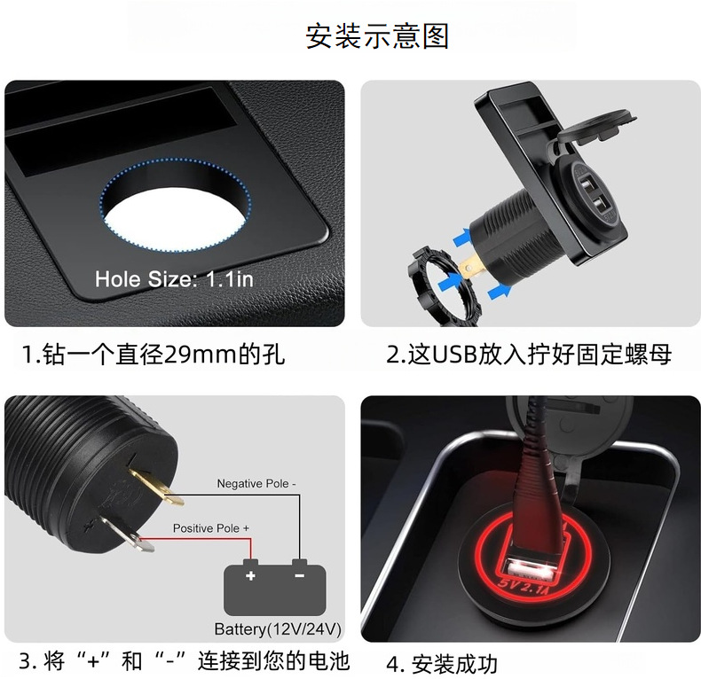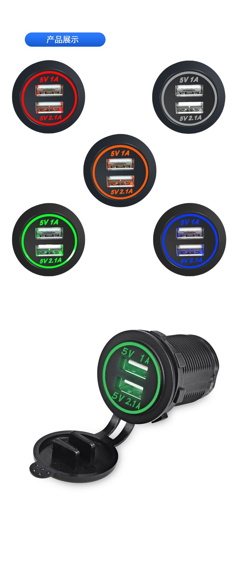 Двойная USB-розетка для зарядного устройства, водонепроницаемая двухпортовая розетка для быстрой зарядки 1 А и 2,1 А, зарядка через USB