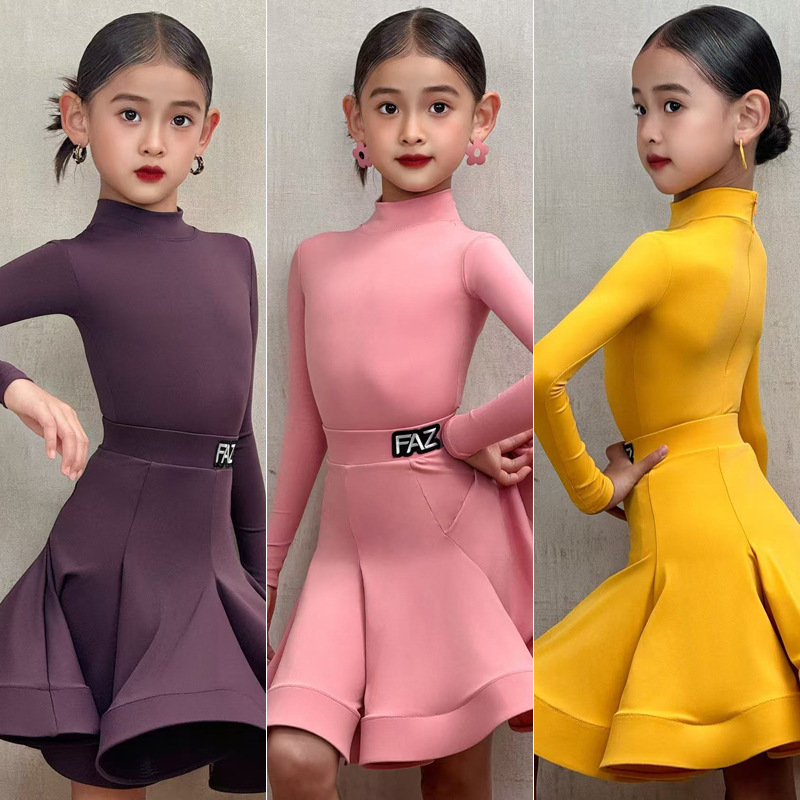 Детский костюм для латинских танцев FAZ, элитное платье для соревнований для девочек, профессиональное исполнение, экзамен по искусству, большая юбка