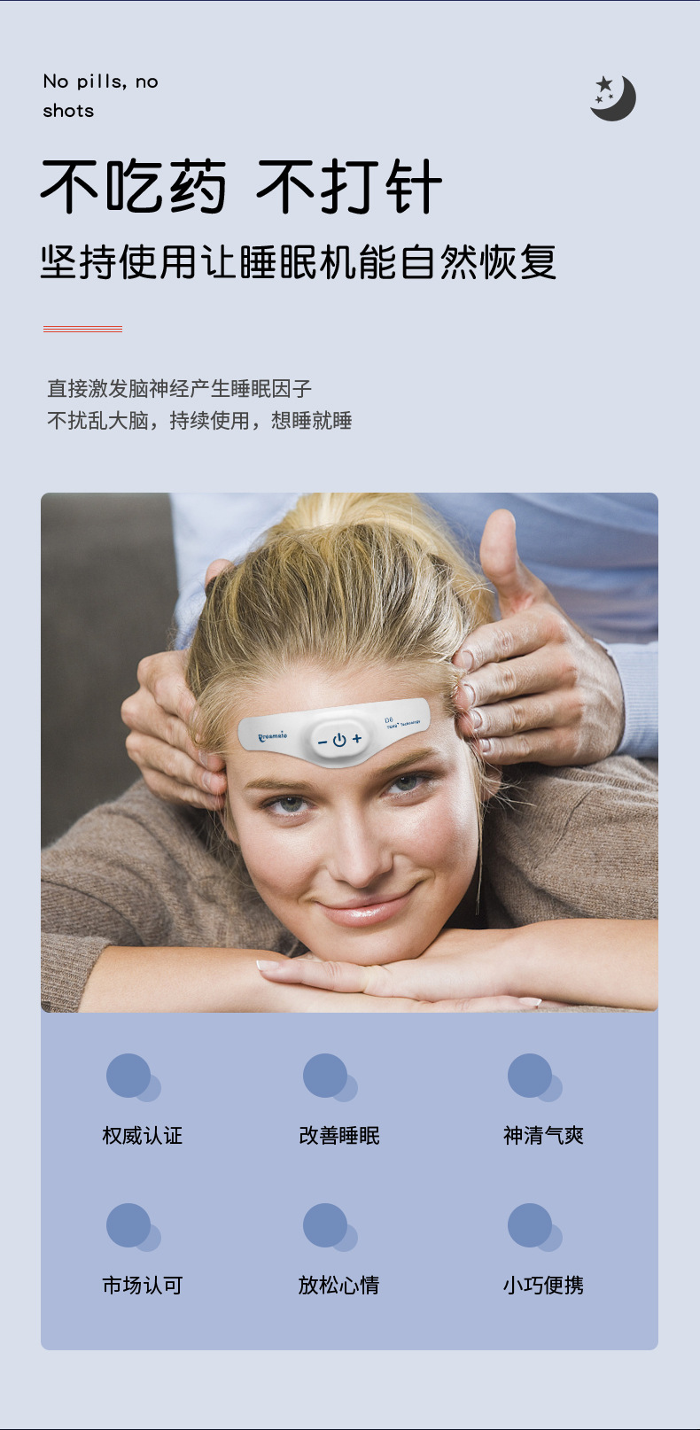 Умное устройство для сна Dream Companion: портативный импульсный прибор для улучшения сна, борьбы с бессонницей и гипнотерапии, микротоковая терапия для сна