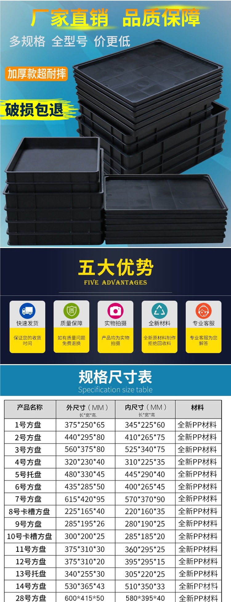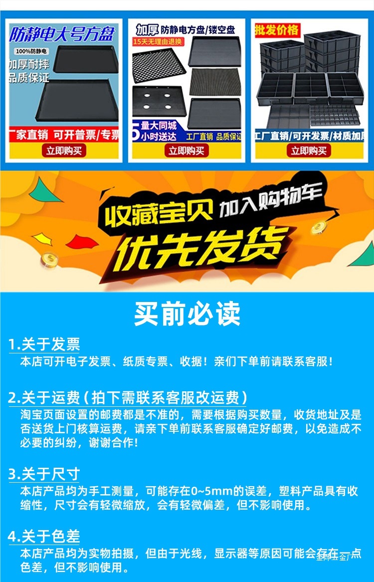 Пластиковый антистатический лоток, прямоугольная квадратная пластина, утолщенная коробка для компонентов, коробка для материалов, коробка для деталей, коробка для инструментов, коробка для переворачивания Jinye