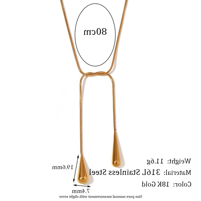 Европейская и американская мода, простая двухконечная цепочка в виде змеи с каплями воды, с покрытием из нержавеющей стали, 18-каратное золото, персонализированное универсальное ожерелье, ювелирные изделия