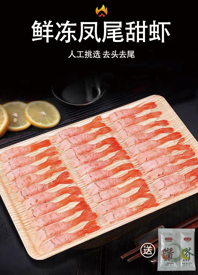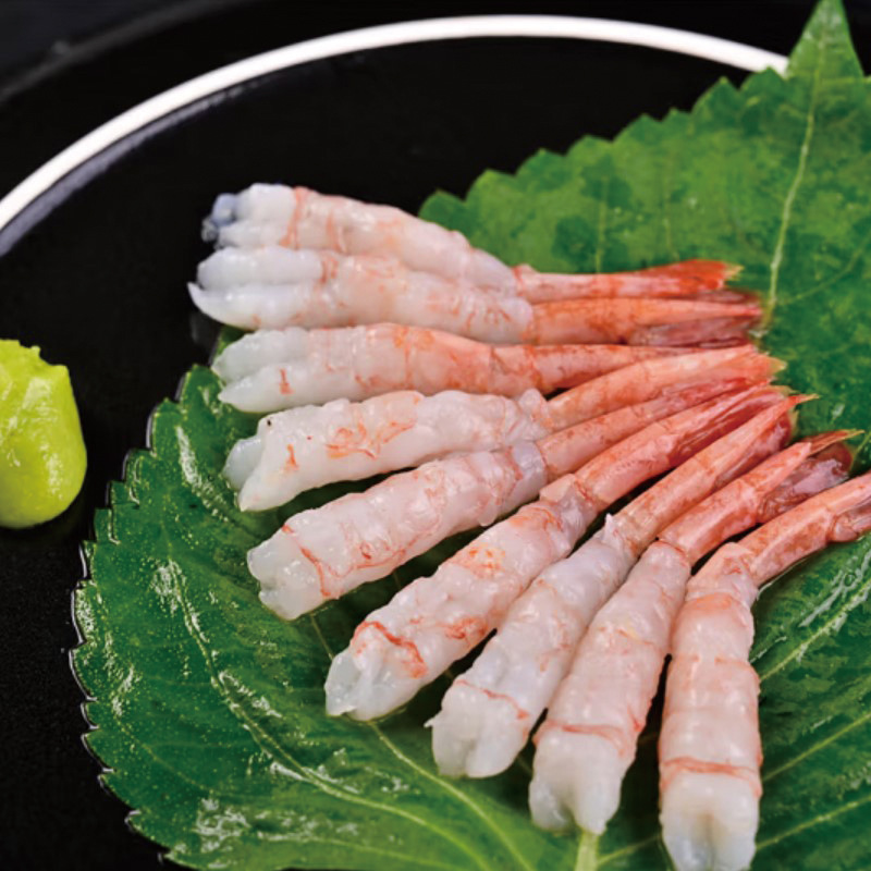 Сашими из арктических сладких креветок, сладкие креветки без голов и панцирей, очень большие сладкие креветки с хвостом феникса, 30 штук, сырые и готовые к употреблению суши, японская еда в руках