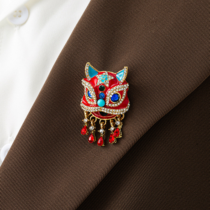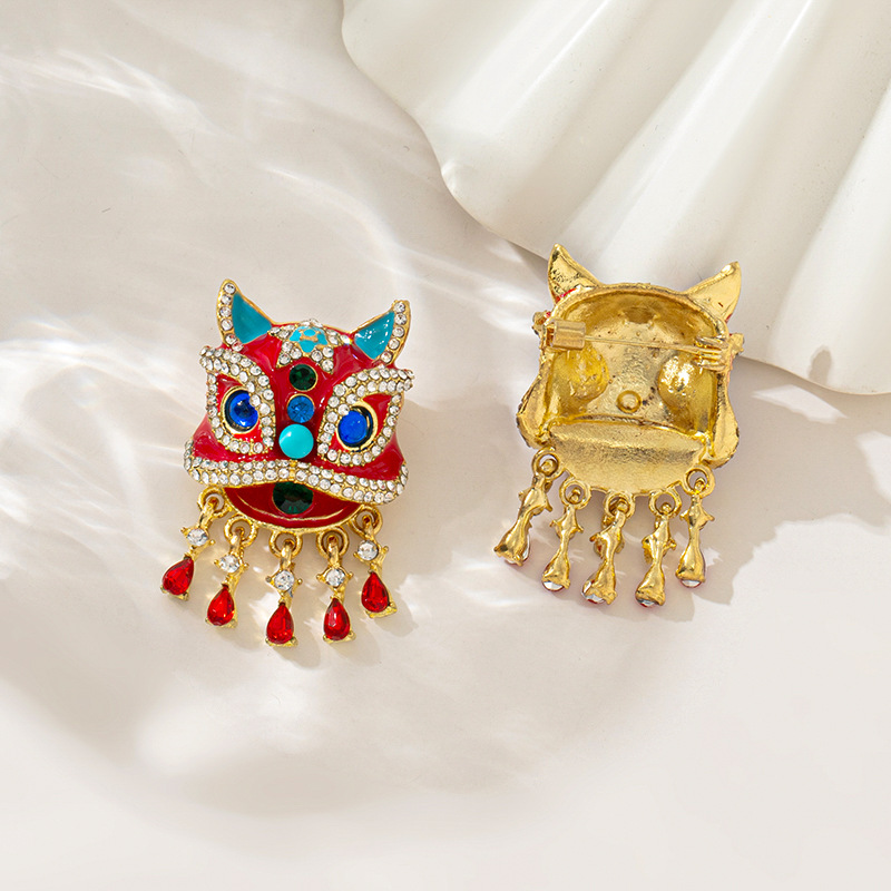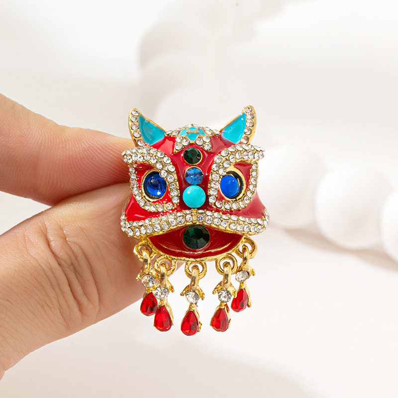 Новая брошь в китайском стиле с танцем льва для женщин, легкая роскошная высококачественная красная праздничная брошь в китайском стиле с танцем льва, аксессуары для женщин