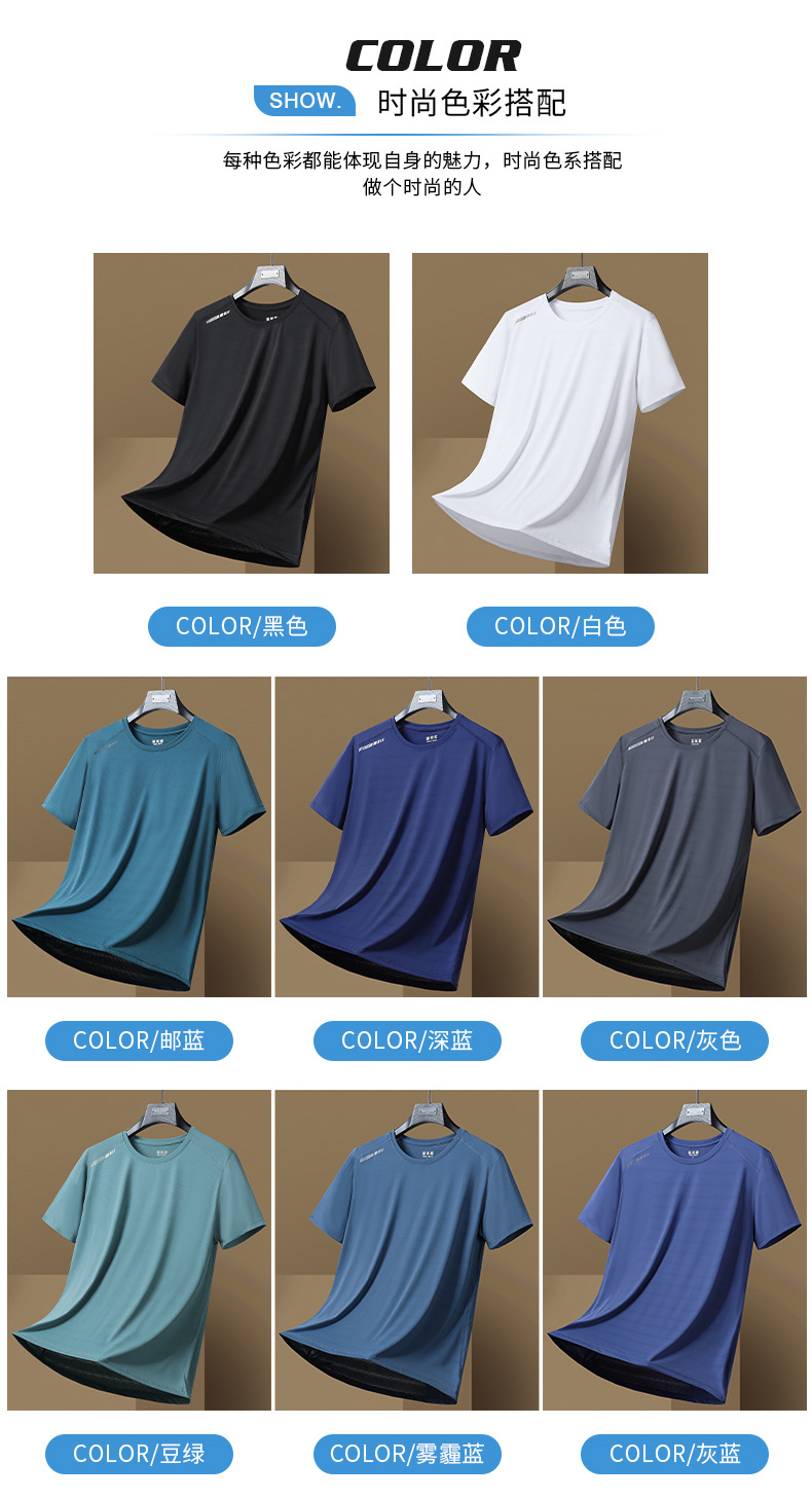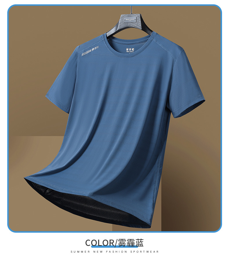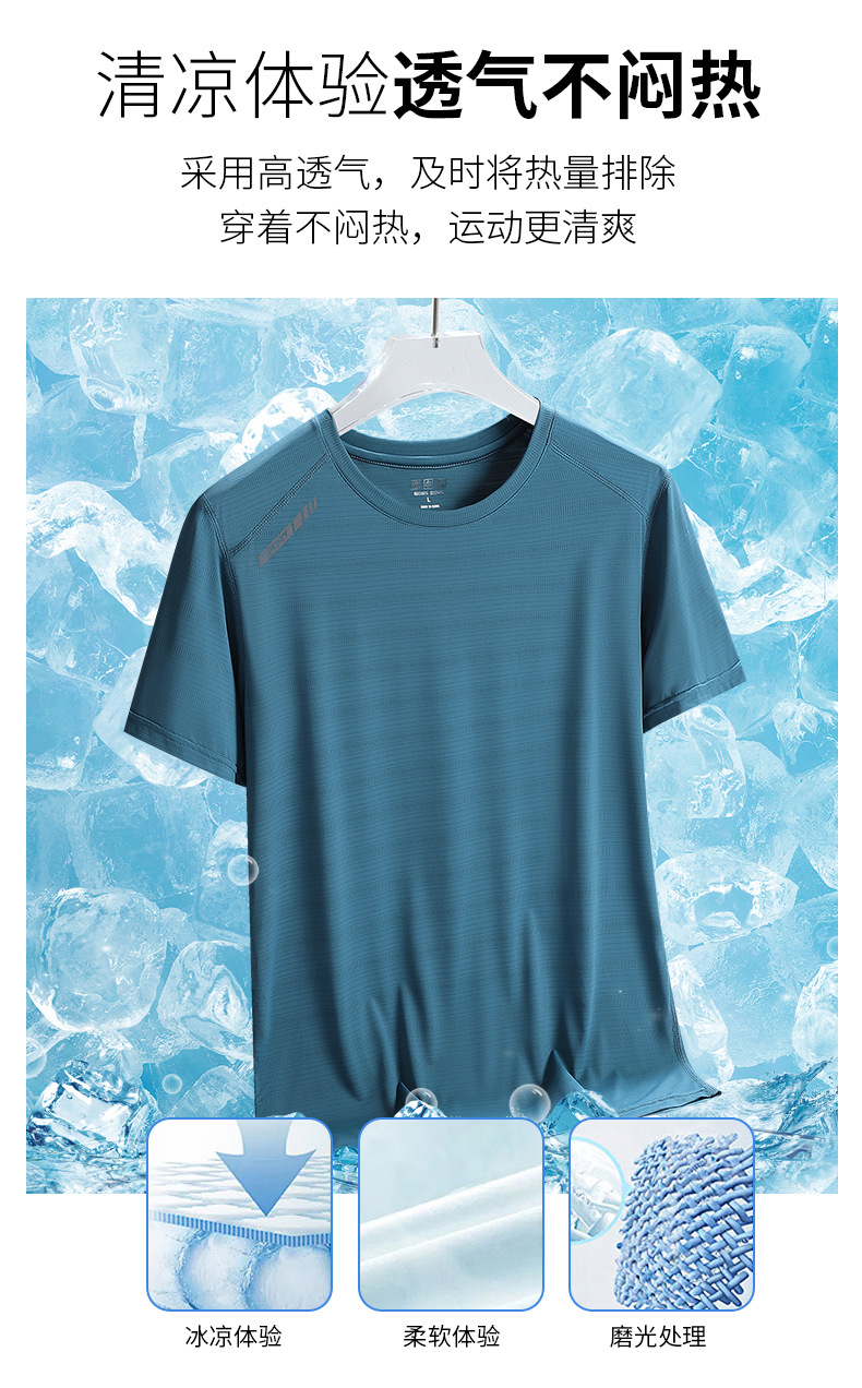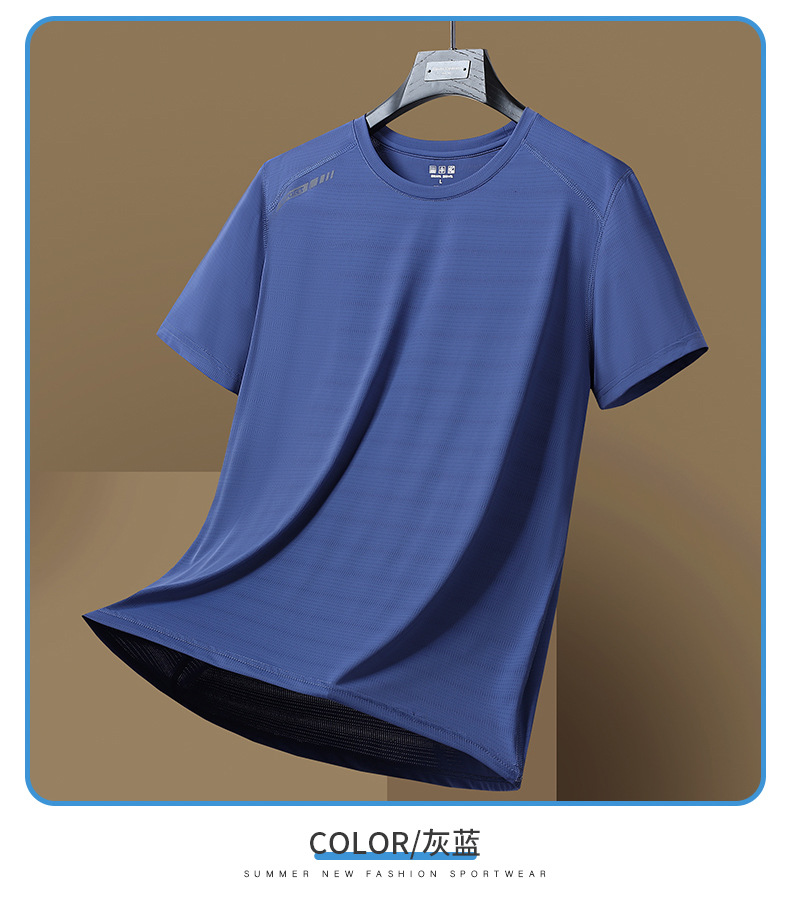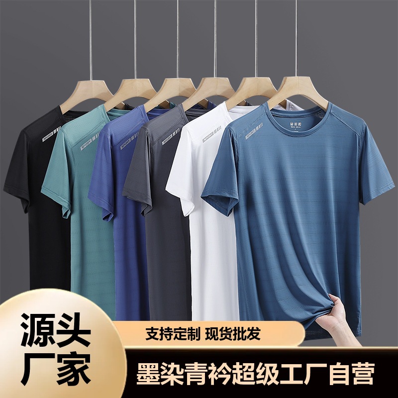 Прямые продажи с фабрики, уличный ледяной шелк, мужские быстросохнущие свободные мужские рубашки с короткими рукавами большого размера для бега с круглым вырезом, групповая покупка, уличный киоск, оптовая продажа