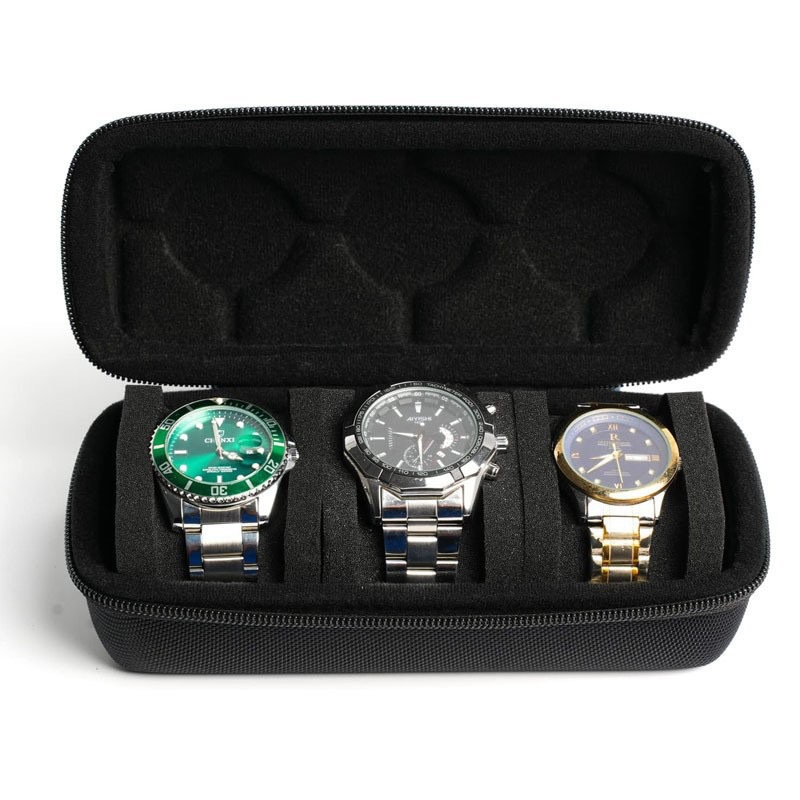 Один слот для карты (может вместить одни часы); Двойные слоты для карт (могут вместить два часа); Три слота для карт (вмещают три часа); Четыре слота для карт (вмещают четыре часов); Пять слотов для карт (вмещают пять часов); Маленькая сумка для часов (вмещает одну часы); Одинарная губчатая вставка